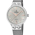 Часы Festina Mademoiselle F20712/1 для женщин представляют собой гармоничное сочетание современного стиля и функциональности. Эти часы имеют корпус из нержавеющей стали серебристого цвета шириной 33 мм, который придает изделию элегантный и утонченный вид. Серебристый циферблат защищен сапфировым стекломСапфировое стеклоПрочный и надёжный материал из кристалла сапфира синтетического происхождения, характеризующийся особой твёрдостью и устойчивостью к царапинам и повреждениям., что гарантирует устойчивость к царапинам и долговечность. Функция отображения даты, расположенная на отметке «6 часов», добавляет практичности и удобства в использовании.  Водонепроницаемость на глубине до 50 метров обеспечивает защиту от незначительных брызг, делая эти часы надежными в повседневном использовании. Браслет из нержавеющей стали в миланском плетении с раскладным замкомРаскладной замокДанный вариант застежки используется только на часах с металлическим браслетом. Отличительная особенность такого крепления в том, что длина браслета становится универсальной и вы можете самостоятельно отрегулировать нужный вам размер – застежка просто двигается по браслету часов. также выполнен в серебристом цвете и прекрасно дополняет общий дизайн, создавая цельный и привлекательный образ.