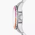 Женские американские часы с минеральным стекломМинеральное стеклоМинеральное стекло представляет собой искусственно выращенный минерал кварца. Такое стекло отличается особой устойчивостью к повреждениям и царапинам. Уступает по некоторым качествам сапфировому стеклу. Fossil Raquel ES5351, кварцевый механизм с высокой точностью. Корпус часов изготовлены из нержавеющей стали. Класс водозащиты: 50 метров, позволит защитить корпус от случайных брызг или капель дождя. Стальной браслет на раскладной застёжкеРаскладная застёжкаТакой тип застёжки используется только на браслетах из металла. Она никогда не раскрывается полностью, происходит разделение на 2 и более частей. Раскладывающая застёжка снизит вероятность потери часов к минимуму.. БезельБезельВнешний ободок, закрепляющий стекло. В спортивных часах так называется поворотное кольцо с делениями на циферблате, выполняет роль таймера – замеряет отрезки времени на шкале. Неподвижный безель – элемент декора. Однонаправленно вращающийся безель на дайверских часах позволяет фиксировать моменты погружения и выныривания на поверхность. с IP-покрытиемIP-покрытиеМетод ионного напыления. Демонстрирует повышенную устойчивость к истиранию, окислению и химическим веществам. Под воздействием высокого давления и температуры около 1500°C молекулы металла надёжно соединяются с частицами корпуса часов.. Стрелки с люминесцентным покрытиемЛюминесцентное покрытиеПозволяет считывать показания времени в темноте. Производители наносят на стрелки, часовые индексы, безель или поверхность циферблата светонакопительный состав, дающий холодное свечение.. Циферблат украшен кристаллами.
