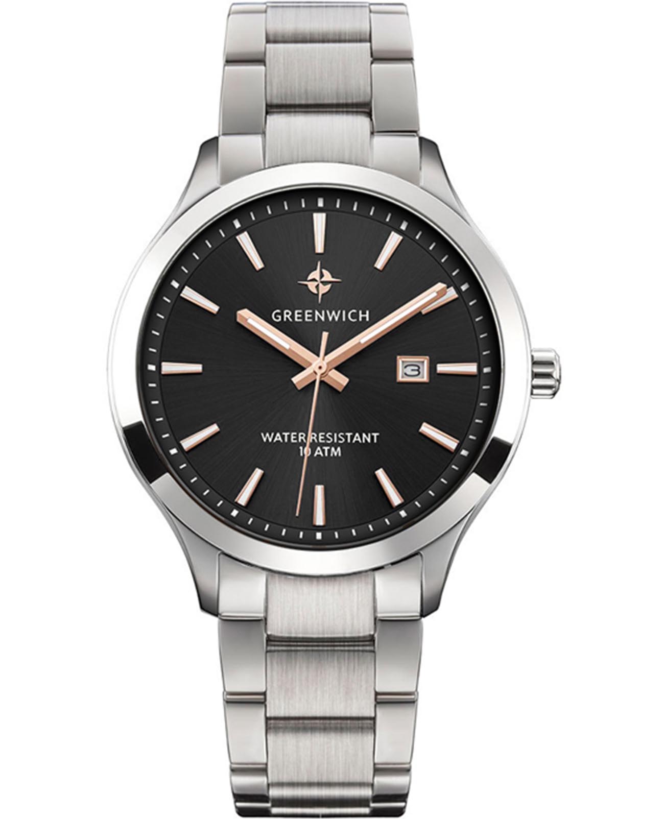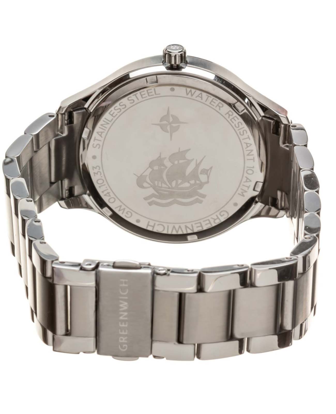 Мужские наручные часы Greenwich Helm GW 041.10.35 представляют собой классический вариант для повседневной носки. Циферблат украшается брендовым логотипом, изображающим Розу Ветров. Эмблема мореплавательского духа символизирует удачу, стремление достигнуть поставленной цели. Часы характеризуются традиционными формами, лаконичным исполнением, что делает модель элегантным дополнением к деловому костюму. Надёжный корпус из нержавеющей стали спасает японский механизм от повреждений и ударов. Минеральное стеклоМинеральное стеклоМинеральное стекло представляет собой искусственно выращенный минерал кварца. Такое стекло отличается особой устойчивостью к повреждениям и царапинам. Уступает по некоторым качествам сапфировому стеклу. отличается устойчивостью к образованию царапин на поверхности. Стальной браслет на раскладной застёжкеРаскладная застёжкаТакой тип застёжки используется только на браслетах из металла. Она никогда не раскрывается полностью, происходит разделение на 2 и более частей. Раскладывающая застёжка снизит вероятность потери часов к минимуму.. Стрелки и метки с люминесцентным покрытиемЛюминесцентное покрытиеПозволяет считывать показания времени в темноте. Производители наносят на стрелки, часовые индексы, безель или поверхность циферблата светонакопительный состав, дающий холодное свечение.. Окошко даты находится в положении 3 часа. Класс водозащиты: 100 метров, позволит плавать, нырять и заниматься другими водными видами спорта. Эти часы с функцией хронографаХронографФункция позволяет измерять отрезки времени с особой точностью: часы, минуты, секунды. Верным признаком хронографа является наличие на циферблате 3 дополнительных окошек-счётчиков. и секундомераСекундомерСекундоме́р — прибор, способный измерять интервалы времени с точностью до долей секунды..