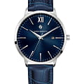 Классические мужские часы серии Brig прекрасно подойдут как под костюм, так и под одежду направления casual. В часах установлен точный японский механизм Miyota. Корпус часов изготовлен из нержавеющей гипоаллергенной стали: он изящно смотрится на руке и не создает неудобств при контакте с одеждой с длинным рукавом. Размер корпуса 41 мм. Полировка на циферблате синего цвета выполнена в виде солнечных лучей. Индексы часов изготовлены вручную и закреплены на двух штифтах. Выпуклая форма рисок создает эффект игры солнечных бликов. Объемные часовая и минутная стрелки имеют мечеобразную форму. В модели представлена дополнительная функция – дата. Ее окошко расположено на уровне трех часов. Циферблат надежно защищен минеральным стекломМинеральное стеклоМинеральное стекло представляет собой искусственно выращенный минерал кварца. Такое стекло отличается особой устойчивостью к повреждениям и царапинам. Уступает по некоторым качествам сапфировому стеклу.. На часах установлен синий ремешок из натуральной кожи. Логотип марки – изображение «розы ветров», символа удачи и новых открытий – расположен на циферблате, заводной головке и внутренней части ремешка. Задняя крышка часов украшена изображениями логотипа и корабля, который является символом марки Greenwich.