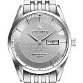 Мужские часы с минеральным стекломМинеральное стеклоМинеральное стекло представляет собой искусственно выращенный минерал кварца. Такое стекло отличается особой устойчивостью к повреждениям и царапинам. Уступает по некоторым качествам сапфировому стеклу. Greenwich Good Luck Classic GW 074.10.33, представляют собой классический вариант для повседневной носки. В центральной части циферблата — отличительная черта моделей этой серии: гильоше, объемные линии которого напоминают волны. Обратите внимание на форму пластины, где крепятся накладные риски: она сделана в форме латинской буквы G, первой буквы в названии бренда. Часы характеризуются традиционными формами, лаконичным исполнением, что делает модель элегантным дополнением к деловому костюму. Сквозь прозрачную заднюю крышку вы увидите детали механизма TMI с декорированным ротором: на нем выгравировано изображение символа английских моряков — парусника. Браслет на раскладной застёжкеРаскладная застёжкаТакой тип застёжки используется только на браслетах из металла. Она никогда не раскрывается полностью, происходит разделение на 2 и более частей. Раскладывающая застёжка снизит вероятность потери часов к минимуму. выполнены из гипоаллергенной нержавеющей стали. Дизайн, актуальный для любого современного образа, и надежность используемых материалов делают автоматические часы Greenwich удобным и стильным аксессуаром на каждый день. Окошко даты и дня недели находится в положении 3 часа.