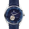 Мужские механические часы с минеральным стекломМинеральное стеклоМинеральное стекло представляет собой искусственно выращенный минерал кварца. Такое стекло отличается особой устойчивостью к повреждениям и царапинам. Уступает по некоторым качествам сапфировому стеклу. Greenwich GW 075.16.36. Корпус часов изготовлен из стали. Класс водозащиты: 100 метров, позволит плавать, нырять и заниматься другими водными видами спорта. Кожаный ремешок на стандартной застёжке.