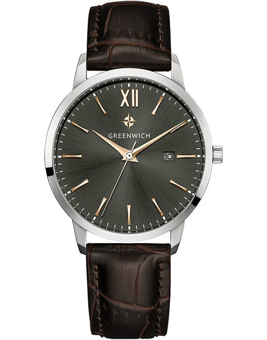 Мужские наручные часы Greenwich GW 021.12.14 представляют собой классический вариант для повседневной носки. Циферблат украшается брендовым логотипом, изображающим Розу Ветров. Эмблема мореплавательского духа символизирует удачу, стремление достигнуть поставленной цели. Часы характеризуются традиционными формами, лаконичным исполнением, что делает модель элегантным дополнением к деловому костюму. Надёжный корпус из нержавеющей стали спасает японский механизм от повреждений и ударов. Минеральное стекло отличается устойчивостью к образованию царапин на поверхности.
