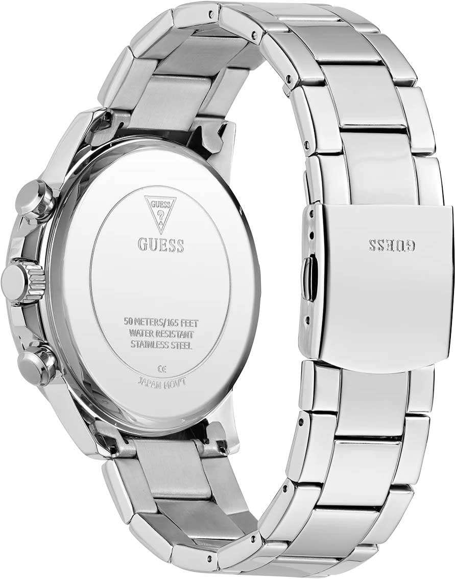 Стильные и функциональные часы Guess GW0900G1 оснащены кварцевым механизмом, что обеспечивает точность и надежность в использовании. Корпус выполнен из прочной стали с полированной поверхностью, придающей изделиям утонченный и современный вид. Черный циферблат украшен метками в виде штрихов и римской цифрой XII, обеспечивающими легкое считывание времени. Время отображается в двух форматах — 12-ти и 24-х часовом, что удобно для тех, кто привык к разным системам времени. Дополнительные циферблаты показывают дату и день недели, что позволяет всегда быть в курсе текущей даты без необходимости использования других устройств. Часы также оснащены тахиметромТахиметрРазмеченная шкала, располагается на ободке или безеле часов. Тахиметр позволяет рассчитать скорость на определённом участке пути, расстояние измеряется в километрах или милях., что добавляет им функциональности и может быть полезно для измерения скорости. Люминесцентное покрытиеЛюминесцентное покрытиеПозволяет считывать показания времени в темноте. Производители наносят на стрелки, часовые индексы, безель или поверхность циферблата светонакопительный состав, дающий холодное свечение. на стрелках и метках обеспечивает отличную видимость в темноте. Минеральное стеклоМинеральное стеклоМинеральное стекло представляет собой искусственно выращенный минерал кварца. Такое стекло отличается особой устойчивостью к повреждениям и царапинам. Уступает по некоторым качествам сапфировому стеклу. защищает циферблат от царапин и повреждений, а водозащита 50WR позволяет не волноваться о случайных контактах с водой, например, во время дождя. Браслет из стали оснащен раскладной застежкойРаскладная застёжкаТакой тип застёжки используется только на браслетах из металла. Она никогда не раскрывается полностью, происходит разделение на 2 и более частей. Раскладывающая застёжка снизит вероятность потери часов к минимуму., обеспечивающей надежную фиксацию часов на руке и комфорт в ношении. Рифленая заводная головка с защитой добавляет изысканности и одновременно защищает механизм от повреждений. Эти часы идеально подойдут для тех, кто ценит стиль, функциональность и качество в одном аксессуаре.