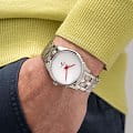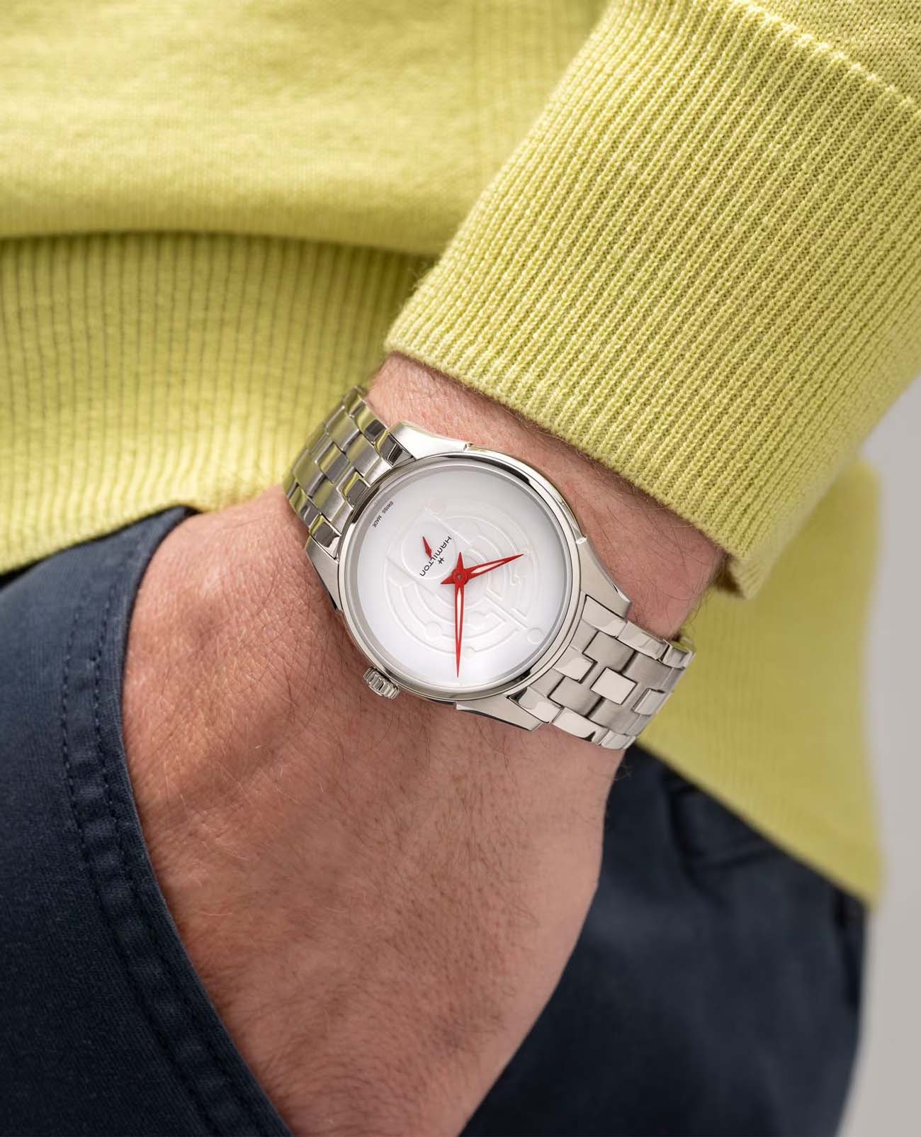 Откройте для себя новые космические горизонты: источником вдохновения для создания модели Jazzmaster Thinline Special Edition послужил фильм «Блуждающая Земля 2» – продолжение китайской научно-фантастической картины режиссера Франта Гво, основанной на романе Лю Цысиня 2000 года. Часы этой специальной серии, заключенные в обтекаемый корпус диаметром 40 мм, имеют черный циферблат с контрастными красными часовой, минутной и малой секундной стрелками. Циферблат привлекает внимание планетарным дизайном – аллюзия на тему исследования космоса, освещенную в фильме. Прочное сапфировое стеклоСапфировое стеклоПрочный и надёжный материал из кристалла сапфира синтетического происхождения, характеризующийся особой твёрдостью и устойчивостью к царапинам и повреждениям.. Браслет из нержавеющей стали с застёжкой «бабочка» с кнопкамиЗастёжка "бабочка"Такой вид застёжки дополняется предохранителями, помогающими избежать случайного раскрытия браслета. Обладают изящным исполнением. . Стрелки с люминесцентным покрытиемЛюминесцентное покрытиеПозволяет считывать показания времени в темноте. Производители наносят на стрелки, часовые индексы, безель или поверхность циферблата светонакопительный состав, дающий холодное свечение..