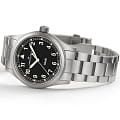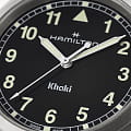 Hamilton Khaki Field Quartz H69401130 — компактные и универсальные часы в классическом военном стиле, с акцентом на надёжность и практичность. Корпус диаметром 38 мм выполнен из нержавеющей стали с сатинированной поверхностью. Он лёгкий, удобный и идеально подходит для запястий любого размера. Циферблат защищён сапфировым стекломСапфировое стеклоПрочный и надёжный материал из кристалла сапфира синтетического происхождения, характеризующийся особой твёрдостью и устойчивостью к царапинам и повреждениям. с антибликовым покрытиемАнтибликовое покрытиеСлой оксида металла в 0,13-0,3 микрон, благодаря которому стекло часов не бликует и не отражает свет. Антибликовое покрытие уменьшает отражение света в 10 раз, обеспечивая отличную читаемость показателей циферблата., устойчивым к царапинам и бликам. Циферблат оформлен в классическом армейском стиле: крупные арабские цифры, 24-часовая шкала по внутреннему кругу, стрелки и метки с люминесцентным покрытиемЛюминесцентное покрытиеПозволяет считывать показания времени в темноте. Производители наносят на стрелки, часовые индексы, безель или поверхность циферблата светонакопительный состав, дающий холодное свечение. для удобного считывания в темноте. Внутри установлен швейцарский кварцевый калибр ETA F05.105mh2 с функцией EOL-индикацииEOLПредставляет собой систему, уведомляющую владельца часов о необходимости замены элемента питания. За 2 недели до полного разряда батарейки секундная стрелка перестаёт ходить чётко и начинает перепрыгивать на 3-4 деления. — предупреждением о скором разряде батареи. Модель укомплектована браслетом из нержавеющей стали с раскладной застёжкойРаскладная застёжкаТакой тип застёжки используется только на браслетах из металла. Она никогда не раскрывается полностью, происходит разделение на 2 и более частей. Раскладывающая застёжка снизит вероятность потери часов к минимуму., обеспечивающей надёжную посадку. Водонепроницаемость 50 метров делает часы устойчивыми к брызгам и дождю, идеально подходящими для повседневного ношения. Khaki Field Quartz — надёжный выбор для тех, кто ценит простоту, точность и долговечность.