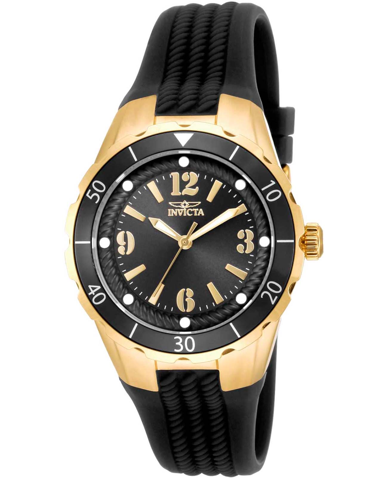 Женские наручные часы Invicta Angel модели IN17486 сочетают в себе элегантный дизайн и надежность современных технологий. Корпус выполнен из нержавеющей стали с IP-покрытиемIP-покрытиеМетод ионного напыления. Демонстрирует повышенную устойчивость к истиранию, окислению и химическим веществам. Под воздействием высокого давления и температуры около 1500°C молекулы металла надёжно соединяются с частицами корпуса часов., что придает часам изысканный вид, идеально подходящий для повседневной носки или особых случаев . БезельБезельВнешний ободок, закрепляющий стекло. В спортивных часах так называется поворотное кольцо с делениями на циферблате, выполняет роль таймера – замеряет отрезки времени на шкале. Неподвижный безель – элемент декора. Однонаправленно вращающийся безель на дайверских часах позволяет фиксировать моменты погружения и выныривания на поверхность. с IP-покрытиемIP-покрытиеМетод ионного напыления. Демонстрирует повышенную устойчивость к истиранию, окислению и химическим веществам. Под воздействием высокого давления и температуры около 1500°C молекулы металла надёжно соединяются с частицами корпуса часов.. Метки выполнены в виде штрихов и точек с люминесцентным покрытиемЛюминесцентное покрытиеПозволяет считывать показания времени в темноте. Производители наносят на стрелки, часовые индексы, безель или поверхность циферблата светонакопительный состав, дающий холодное свечение., что добавляет классический шарм . Часы оснащены минеральным стекломМинеральное стеклоМинеральное стекло представляет собой искусственно выращенный минерал кварца. Такое стекло отличается особой устойчивостью к повреждениям и царапинам. Уступает по некоторым качествам сапфировому стеклу., обеспечивающим прочную защиту от царапин и надежность в использовании. Силиконовый ремешок на стандартной застежке гарантирует комфортное ношение и безопасность . Модель имеет водонепроницаемость 50 метров, позволит защитить корпус от случайных брызг или капель дождя. Механизм часов кварцевый, работающий на базе калибра TMI PC21J, что гарантирует высокую точность хода без необходимости подзаводки.