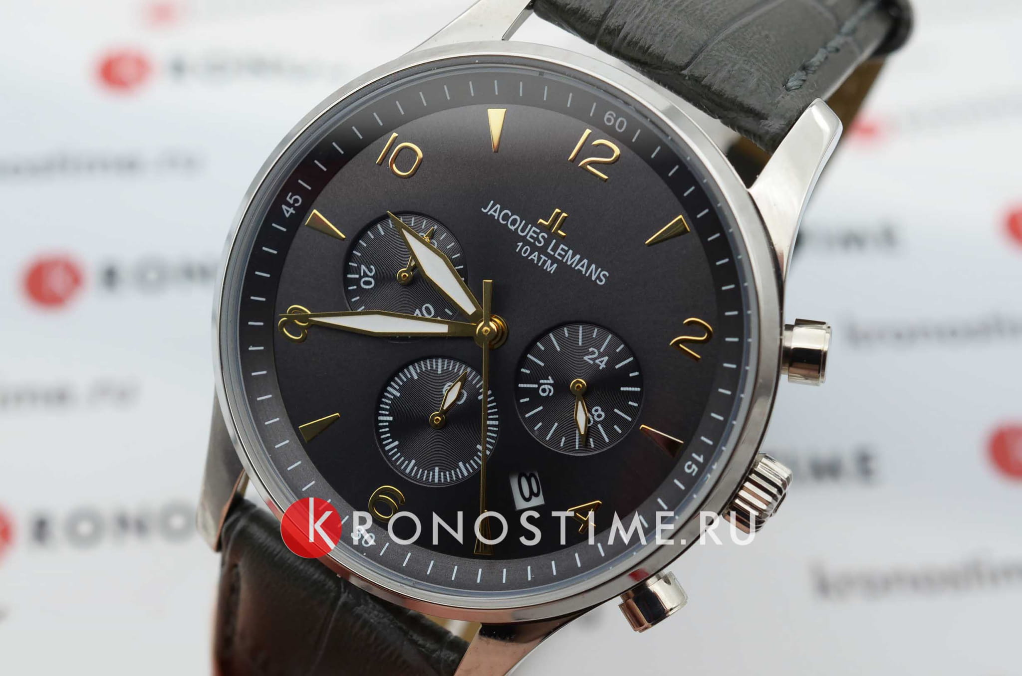Наручные часы-хронографХронографФункция позволяет измерять отрезки времени с особой точностью: часы, минуты, секунды. Верным признаком хронографа является наличие на циферблате 3 дополнительных окошек-счётчиков. Jacques Lemans призваны ставить на первое место индивидуальный стиль владельца, классическая элегантность придётся по вкусу каждому. Брендовые часы привлекают минималистичным дизайном, отсутствие вычурности и обилия декорирующих элементов делают модель лучшим решением для ежедневного применения. Аксессуар можно носить с деловыми костюмами и повседневной одеждой, он органично сочетается как с классическими брюками, так и с рваными джинсами. Это настоящее часовое искусство высокого качества, часы считаются актуальным вариантом на все времена и с идеальной точностью показывают время благодаря надёжному японскому механизму. Дата. 12/24-часовой формат времени. СекундомерСекундомерСекундоме́р — прибор, способный измерять интервалы времени с точностью до долей секунды..