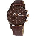 Мужские наручные часы с хронографом; Корпус - Нержавеющая сталь, PVD покрытие, Стекло - Минеральное, Водозащита -100 м. (WR 100), Материал ремешка - Кожаный