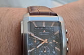 Мужские часы- хронографХронографФункция позволяет измерять отрезки времени с особой точностью: часы, минуты, секунды. Верным признаком хронографа является наличие на циферблате 3 дополнительных окошек-счётчиков. с секундомеромСекундомерСекундоме́р — прибор, способный измерять интервалы времени с точностью до долей секунды. в необычном корпусе прямоугольной формы. Кварцевый механизм с высокой точностью. Минеральное стеклоМинеральное стеклоМинеральное стекло представляет собой искусственно выращенный минерал кварца. Такое стекло отличается особой устойчивостью к повреждениям и царапинам. Уступает по некоторым качествам сапфировому стеклу. устойчивое к появлению царапин, обладающее высокой прозрачностью. Класс водозащиты: 30 метров, позволит защитить корпус от случайных брызг или капель дождя. Корпус часов изготовлен из нержавеющей стали. На циферблате расположены три дополнительных индикатора и окошко даты. Окно даты расположено между 4 и 5 часами. Стрелки и метки с люминесцентным покрытиемЛюминесцентное покрытиеПозволяет считывать показания времени в темноте. Производители наносят на стрелки, часовые индексы, безель или поверхность циферблата светонакопительный состав, дающий холодное свечение.. Ремешок из натуральной кожи на стандартной застежке.