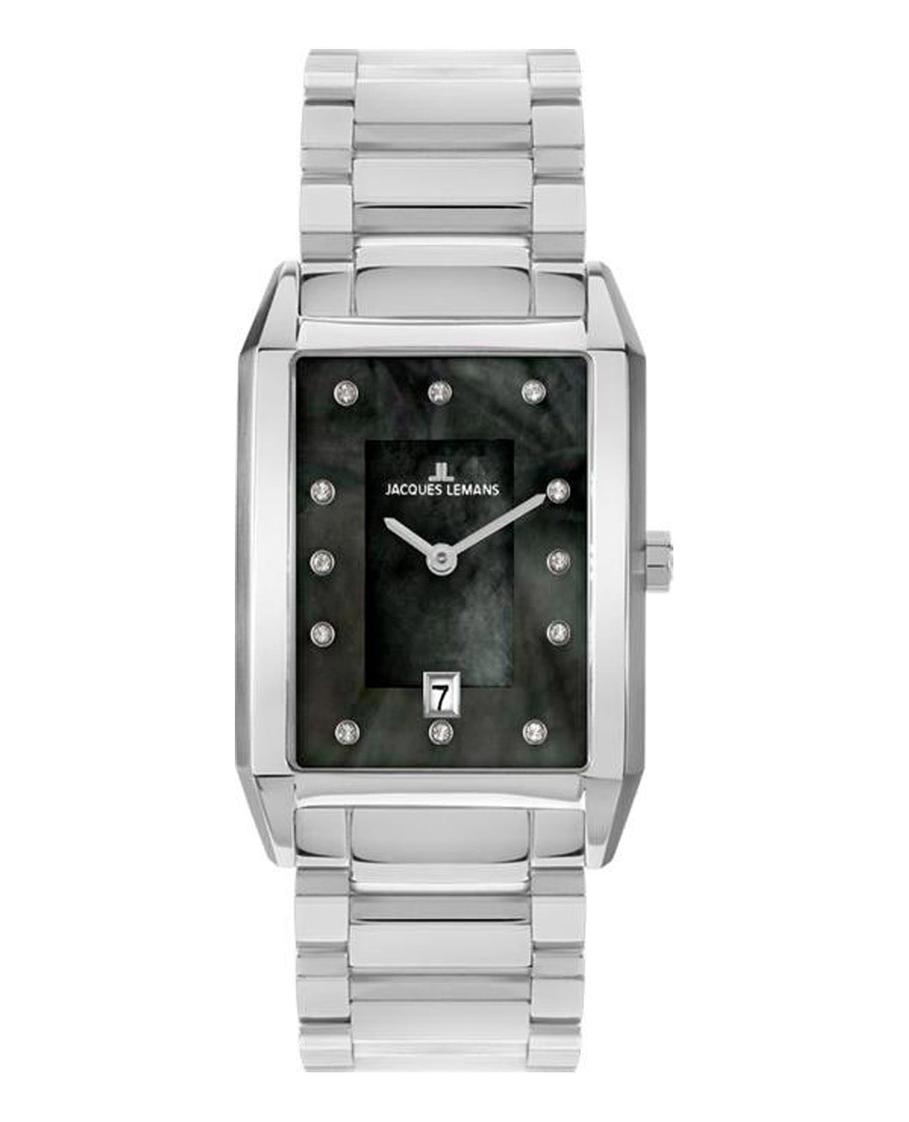 Женские часы Jacques Lemans Classic 1-2158J с минеральным стекломМинеральное стеклоМинеральное стекло представляет собой искусственно выращенный минерал кварца. Такое стекло отличается особой устойчивостью к повреждениям и царапинам. Уступает по некоторым качествам сапфировому стеклу., кварцевый механизм с высокой точностью. Корпус из нержвающей стали. Циферблат украшен кристаллами Swarovski. Окошко даты находится в положении 6 часов. Класс водозащиты: 50 метров, позволит защитить корпус от случайных брызг или капель дождя. Стальной браслет на раскладной застёжкеРаскладная застёжкаТакой тип застёжки используется только на браслетах из металла. Она никогда не раскрывается полностью, происходит разделение на 2 и более частей. Раскладывающая застёжка снизит вероятность потери часов к минимуму..