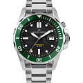 Мужские часы Jacques Lemans Hybromatic 1-2170K с минеральным стекломМинеральное стеклоМинеральное стекло представляет собой искусственно выращенный минерал кварца. Такое стекло отличается особой устойчивостью к повреждениям и царапинам. Уступает по некоторым качествам сапфировому стеклу., гибрид кварца и механики с автоподзаводом. Корпус выполенен из нержавеющей стали. Вращающийся безельБезельВнешний ободок, закрепляющий стекло. В спортивных часах так называется поворотное кольцо с делениями на циферблате, выполняет роль таймера – замеряет отрезки времени на шкале. Неподвижный безель – элемент декора. Однонаправленно вращающийся безель на дайверских часах позволяет фиксировать моменты погружения и выныривания на поверхность. из нержавеющей стали с PVDPVDУльтратонкое покрытие наносится в технике вакуумного напыления, сочетает в себе нитрид титана особой прочности со слоем золота или оксида хрома. Несёт в себе декоративную или защитную функцию. покрытием. Стрелки и метки с люминесцентным покрытиемЛюминесцентное покрытиеПозволяет считывать показания времени в темноте. Производители наносят на стрелки, часовые индексы, безель или поверхность циферблата светонакопительный состав, дающий холодное свечение.. Окошко даты находится в положении 3 часов. Класс водозащиты: 200 метров, позволит плавать, нырять и заниматься другими водными видами спорта. Стальной браслет на раскладной застёжкеРаскладная застёжкаТакой тип застёжки используется только на браслетах из металла. Она никогда не раскрывается полностью, происходит разделение на 2 и более частей. Раскладывающая застёжка снизит вероятность потери часов к минимуму..