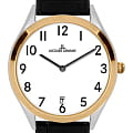 Женские кварцевые часы Jacques Lemans 1-2186B с минеральным стекломМинеральное стеклоМинеральное стекло представляет собой искусственно выращенный минерал кварца. Такое стекло отличается особой устойчивостью к повреждениям и царапинам. Уступает по некоторым качествам сапфировому стеклу.. БезельБезельВнешний ободок, закрепляющий стекло. В спортивных часах так называется поворотное кольцо с делениями на циферблате, выполняет роль таймера – замеряет отрезки времени на шкале. Неподвижный безель – элемент декора. Однонаправленно вращающийся безель на дайверских часах позволяет фиксировать моменты погружения и выныривания на поверхность. с PVD-покрытиемPVDУльтратонкое покрытие наносится в технике вакуумного напыления, сочетает в себе нитрид титана особой прочности со слоем золота или оксида хрома. Несёт в себе декоративную или защитную функцию.. Корпус выполнен из нержавеющей стали. Класс водозащиты: 50 метров, позволит защитить корпус от случайных брызг или капель дождя. Кожаный ремешок на стандартной застежке. Окошко даты находится в положении 6 часов.