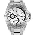 Многофункциональные часы 42-11 выполнены в эффектном спортивном стиле. Корпус диаметром 41 мм сделан из гипоаллергенной нержавеющей стали. На широкий БезельБезельВнешний ободок, закрепляющий стекло. В спортивных часах так называется поворотное кольцо с делениями на циферблате, выполняет роль таймера – замеряет отрезки времени на шкале. Неподвижный безель – элемент декора. Однонаправленно вращающийся безель на дайверских часах позволяет фиксировать моменты погружения и выныривания на поверхность., помимо тахиметрической шкалы, вынесена дополнительная индикация секунд. Для удобной заводной головки конструкцией корпуса предусмотрена специальная защита. Комбинация серебристого и черного цветов притягивает внимание при первом же взгляде на циферблат часов. Визуально выделены 20-минутный отрезок, индикатор 24-х часов, стрелки индикаторов даты и дня недели. Крупные центральные стрелки и риски будут хорошо читаться при любом освещении или его отсутствии: они покрыты люминесцентным составомЛюминесцентное покрытиеПозволяет считывать показания времени в темноте. Производители наносят на стрелки, часовые индексы, безель или поверхность циферблата светонакопительный состав, дающий холодное свечение., который светится в темноте. В модели установлено ударопрочное Минеральное стеклоМинеральное стеклоМинеральное стекло представляет собой искусственно выращенный минерал кварца. Такое стекло отличается особой устойчивостью к повреждениям и царапинам. Уступает по некоторым качествам сапфировому стеклу. Crystex. Повышенная водостойкость равна 10 атмосфер. Раскладная застёжкаРаскладная застёжкаТакой тип застёжки используется только на браслетах из металла. Она никогда не раскрывается полностью, происходит разделение на 2 и более частей. Раскладывающая застёжка снизит вероятность потери часов к минимуму. надежно удерживает на запястье браслет из нержавеющей стали с полировкой. Часы 42-11 хорошо сочетаются со спортивной формой, одновременно с этим, они могут стать ярким элементом образа в стиле casual.