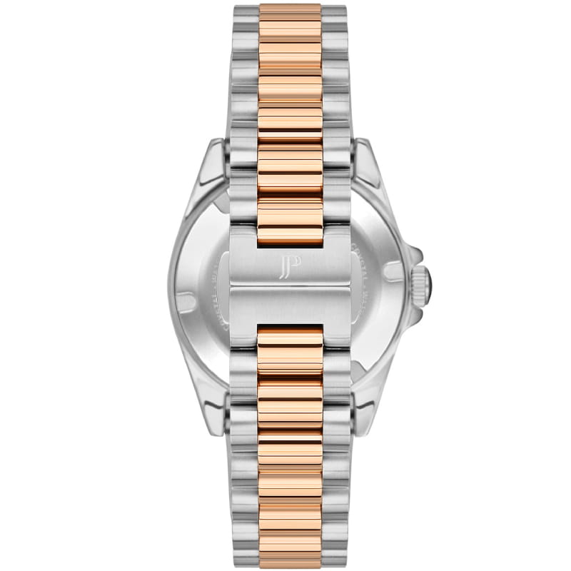 Часы Jacques Philippe JPQLS347388 из коллекции Infinitum — элегантные женские  часы, сочетающие в себе швейцарское качество и современный дизайн. Корпус диаметром 34 мм выполнен из нержавеющей стали с PVD-покрытиемPVDУльтратонкое покрытие наносится в технике вакуумного напыления, сочетает в себе нитрид титана особой прочности со слоем золота или оксида хрома. Несёт в себе декоративную или защитную функцию., а зеленый циферблат защищён сапфировым стекломСапфировое стеклоПрочный и надёжный материал из кристалла сапфира синтетического происхождения, характеризующийся особой твёрдостью и устойчивостью к царапинам и повреждениям.. БезельБезельВнешний ободок, закрепляющий стекло. В спортивных часах так называется поворотное кольцо с делениями на циферблате, выполняет роль таймера – замеряет отрезки времени на шкале. Неподвижный безель – элемент декора. Однонаправленно вращающийся безель на дайверских часах позволяет фиксировать моменты погружения и выныривания на поверхность. с PVD-покрытиемPVDУльтратонкое покрытие наносится в технике вакуумного напыления, сочетает в себе нитрид титана особой прочности со слоем золота или оксида хрома. Несёт в себе декоративную или защитную функцию.. Циферблат инкрустирован кристаллами. Внутри установлен швейцарский кварцевый механизм, обеспечивающий высокую точность хода. Водозащита 100 метров (10 ATM) позволяет использовать часы для плавания и других водных видов спорта. Браслет из нержавеющей стали с застёжкой бабочкаЗастёжка "бабочка"Такой вид застёжки дополняется предохранителями, помогающими избежать случайного раскрытия браслета. Обладают изящным исполнением. обеспечивает комфортное ношение и надёжную фиксацию на запястье. Эти часы идеально подойдут для тех, кто ценит сочетание классического стиля и современных технологий.