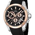 Мужские швейцарские часы-хронографХронографФункция позволяет измерять отрезки времени с особой точностью: часы, минуты, секунды. Верным признаком хронографа является наличие на циферблате 3 дополнительных окошек-счётчиков. Jaguar Special Edition J689/1. Кварцевый швейцарский калибр Ronda 5030.D. Сапфировое стеклоСапфировое стеклоПрочный и надёжный материал из кристалла сапфира синтетического происхождения, характеризующийся особой твёрдостью и устойчивостью к царапинам и повреждениям. устойчивое к мелким механическим повреждениям. Корпус часов изготовлен из нержавеющей стали. Стрелки и метки с люминесцентным покрытиемЛюминесцентное покрытиеПозволяет считывать показания времени в темноте. Производители наносят на стрелки, часовые индексы, безель или поверхность циферблата светонакопительный состав, дающий холодное свечение.. Окошко даты находится в положении между «3» и «6 часами». Класс водозащиты: 100 метров, позволит плавать, нырять и заниматься другими водными видами спорта. Силиконовый ремешок на стандартной застёжке. БезельБезельВнешний ободок, закрепляющий стекло. В спортивных часах так называется поворотное кольцо с делениями на циферблате, выполняет роль таймера – замеряет отрезки времени на шкале. Неподвижный безель – элемент декора. Однонаправленно вращающийся безель на дайверских часах позволяет фиксировать моменты погружения и выныривания на поверхность. с PVD-покрытиемPVDУльтратонкое покрытие наносится в технике вакуумного напыления, сочетает в себе нитрид титана особой прочности со слоем золота или оксида хрома. Несёт в себе декоративную или защитную функцию..