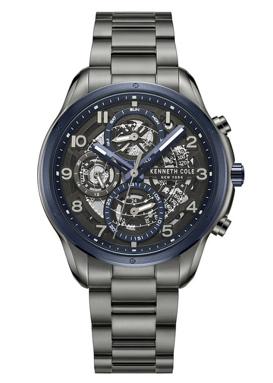 Мужские кварцевые часы-хронографХронографФункция позволяет измерять отрезки времени с особой точностью: часы, минуты, секунды. Верным признаком хронографа является наличие на циферблате 3 дополнительных окошек-счётчиков. с секундомеромСекундомерСекундоме́р — прибор, способный измерять интервалы времени с точностью до долей секунды. Kenneth Cole Dress Sport KCWGK2218903, кварцевый механизм с высокой точностью. Класс водозащиты: 30 метров, позволит защитить корпус от случайных брызг или капель дождя. Корпус и безельБезельВнешний ободок, закрепляющий стекло. В спортивных часах так называется поворотное кольцо с делениями на циферблате, выполняет роль таймера – замеряет отрезки времени на шкале. Неподвижный безель – элемент декора. Однонаправленно вращающийся безель на дайверских часах позволяет фиксировать моменты погружения и выныривания на поверхность. изготовлен из стали с IP-покрытиемIP-покрытиеМетод ионного напыления. Демонстрирует повышенную устойчивость к истиранию, окислению и химическим веществам. Под воздействием высокого давления и температуры около 1500°C молекулы металла надёжно соединяются с частицами корпуса часов.. Индикация даты и дня недели. Стрелки и метки с люминесцентным покрытиемЛюминесцентное покрытиеПозволяет считывать показания времени в темноте. Производители наносят на стрелки, часовые индексы, безель или поверхность циферблата светонакопительный состав, дающий холодное свечение.. Браслет из стали с IP-покрытиемIP-покрытиеМетод ионного напыления. Демонстрирует повышенную устойчивость к истиранию, окислению и химическим веществам. Под воздействием высокого давления и температуры около 1500°C молекулы металла надёжно соединяются с частицами корпуса часов. и с раскладной застёжкойРаскладная застёжкаТакой тип застёжки используется только на браслетах из металла. Она никогда не раскрывается полностью, происходит разделение на 2 и более частей. Раскладывающая застёжка снизит вероятность потери часов к минимуму..