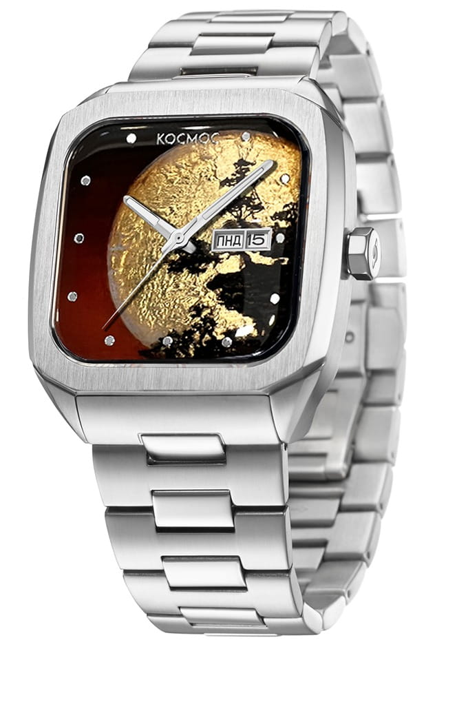 Мужские наручные часы Космос К 213.10 - Суперлуние — это уникальная модель. Суперлуние — это явление, когда полная Луна приближается к Земле на расстояние менее 362 тысяч километров. В это время она светится на одну треть ярче, а её диаметр увеличивается на 15%. Это невероятное астрономическое событие запечатлено в лаковой миниатюре на циферблате этих часов. Для создания этой уникальной модели часов мастера бренда выбрали технику лаковой миниатюры. На основу наносится несколько слоев лака и краски, их чередование создает объемный эффект и ощущение движения. Процесс постепенной прорисовки деталей довольно длительный: художнику требуется до 50 часов для завершения одного сюжета. Затем миниатюра запекается в специальной печи, что придаёт рисунку необходимую яркость и завершенность. Эти часы созданы в единственном экземпляре. В часах установлен механизм TMI с функцией автоподзавода. Они показывают часы, минуты и секунды, а также дату и день недели, индикатор которых с накладной рамкой расположен в положении «3 часа». За движением деталей механизма можно наблюдать, стоит только перевернуть часы: задняя крышка прозрачная, закреплена на 4-х винтах. Часовая и минутная стрелки c люминесцентным покрытиемЛюминесцентное покрытиеПозволяет считывать показания времени в темноте. Производители наносят на стрелки, часовые индексы, безель или поверхность циферблата светонакопительный состав, дающий холодное свечение., которое светится в темноте. В модели установлено сапфировое стеклоСапфировое стеклоПрочный и надёжный материал из кристалла сапфира синтетического происхождения, характеризующийся особой твёрдостью и устойчивостью к царапинам и повреждениям. с антибликовым покрытиемАнтибликовое покрытиеСлой оксида металла в 0,13-0,3 микрон, благодаря которому стекло часов не бликует и не отражает свет. Антибликовое покрытие уменьшает отражение света в 10 раз, обеспечивая отличную читаемость показателей циферблата.. Браслет собран из стальных звеньев с полировкой и оснащен удобной застёжкой «бабочка» с кнопкамиЗастёжка "бабочка"Такой вид застёжки дополняется предохранителями, помогающими избежать случайного раскрытия браслета. Обладают изящным исполнением. , которая сводит к минимуму вероятность потери.