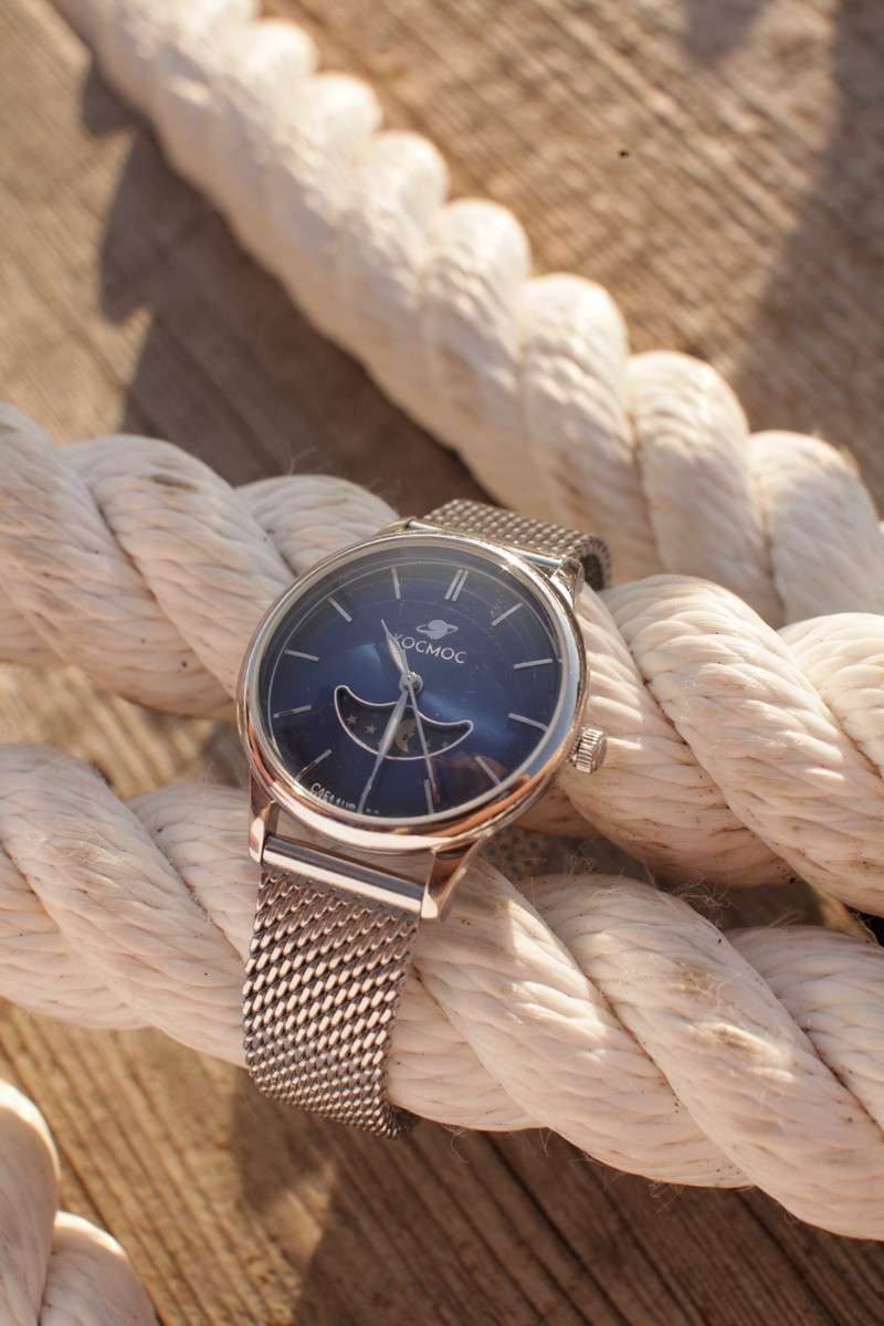Женские наручные часы Космос Солнце и Луна K 617.10.36 — это сочетание традиций часового искусства 60-70-х годов и футуристического дизайна, вдохновленного космическими исследованиями. Они не только служат напоминанием о прошлом, но и побуждают задуматься о будущем, позволяя наслаждаться качеством и смыслом, вложенными в каждую деталь. Полированный корпус часов выполнен в виде силуэта летающей тарелки благодаря выпуклым формам стекла и нижней части корпуса. Стальные ушки, которые напоминают опоры летающей тарелки, завершает общий образ. На задней крышке часов выгравирован фантазийный сюжет – космическая станция будущего. Элегантные женские часы из серии Солнце и Луна выделяются функцией день/ночь. Циферблат выполнен в ретро-стиле с выгнутыми краями, что требует применения сложных технологий в производстве. Циферблаты такой формы были характерны для часов прошлых эпох. Кончик секундной стрелки изогнут в соответствии с формой циферблата. На градиентном выпуклом циферблате выполнена шлифовка в стиле солнечных лучей, а также размещены индексы, изготовленные вручную и закрепленные на двух штифтах. Часовая и минутная стрелки, а также круг по краю циферблата, напоминающий ореол Земли, с люминесцентным покрытиемЛюминесцентное покрытиеПозволяет считывать показания времени в темноте. Производители наносят на стрелки, часовые индексы, безель или поверхность циферблата светонакопительный состав, дающий холодное свечение., которое светится в темноте, создавая завораживающий эффект. Форма минерального стеклаМинеральное стеклоМинеральное стекло представляет собой искусственно выращенный минерал кварца. Такое стекло отличается особой устойчивостью к повреждениям и царапинам. Уступает по некоторым качествам сапфировому стеклу. тщательно продумана: оно выгнуто как снаружи, так и изнутри. Такое решение позволяет избежать искажения изображения на циферблате, в отличие от стекла с прямой внутренней частью, которое создает эффект линзы. Модель оснащена гибким и прочным браслетом миланского плетения. Заводная головка, застежка и ремешок украшены фирменным логотипом.
