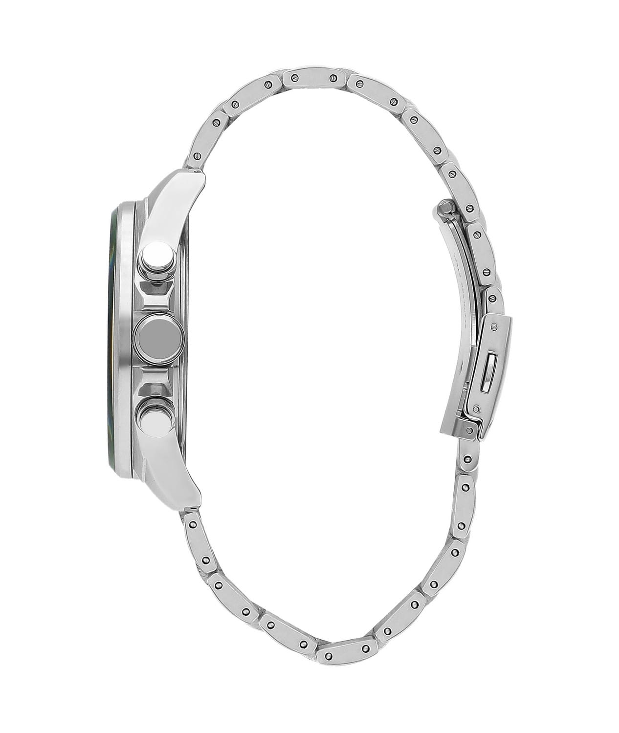 Мужские наручные часы Lee Cooper LC07830.370 — элегантная модель с функциональными возможностями для повседневного использования. Круглый корпус из суперметалла придаёт часам классический и современный вид. Циферблат с акцентными метками и стрелками с люминесцентным покрытиемЛюминесцентное покрытиеПозволяет считывать показания времени в темноте. Производители наносят на стрелки, часовые индексы, безель или поверхность циферблата светонакопительный состав, дающий холодное свечение. также оснащён вспомогательными индикаторами, включая 24-часовой формат времени, а также второй часовой поясВторой часовой поясФункция, позволяющая отображать время двух часовых поясов одновременно.. Изысканный циферблат защищён минеральным стекломМинеральное стеклоМинеральное стекло представляет собой искусственно выращенный минерал кварца. Такое стекло отличается особой устойчивостью к повреждениям и царапинам. Уступает по некоторым качествам сапфировому стеклу., устойчивым к царапинам. Часы работают на кварцевом механизме, обеспечивающем точность хода. Браслет из нержавеющей стали с раскладной застёжкойРаскладная застёжкаТакой тип застёжки используется только на браслетах из металла. Она никогда не раскрывается полностью, происходит разделение на 2 и более частей. Раскладывающая застёжка снизит вероятность потери часов к минимуму. гарантирует удобную посадку и надёжную фиксацию на запястье. Водозащита 50 метров защищает часы от брызг и дождя, делая их подходящими для повседневного использования.