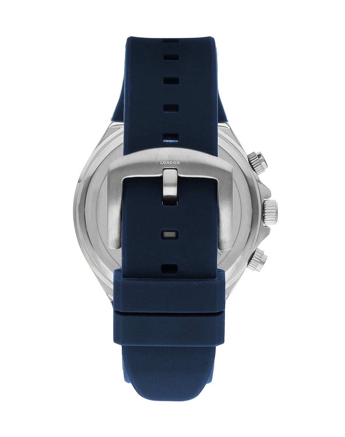 Мужские часы Lee Cooper LC07854.399 выполнены в классическом стиле и сочетают строгий дизайн с надёжным механизмом. Модель оснащена кварцевым механизмом, обеспечивающим точность хода и минимальное обслуживание. Корпус имеет размер 46 мм, изготовлен из суперметалла. Циферблат синего цвета дополнен индексами для чёткого отсчёта времени, а также функциями отображения даты, 24-часового индикатора времени и хронографаХронографФункция позволяет измерять отрезки времени с особой точностью: часы, минуты, секунды. Верным признаком хронографа является наличие на циферблате 3 дополнительных окошек-счётчиков.. Защиту циферблата обеспечивает минеральное стеклоМинеральное стеклоМинеральное стекло представляет собой искусственно выращенный минерал кварца. Такое стекло отличается особой устойчивостью к повреждениям и царапинам. Уступает по некоторым качествам сапфировому стеклу., устойчивое к мелким механическим повреждениям. Ремень из каучука оснащен стандартной застежкой, обеспечивающим комфортное и безопасное ношение. Водозащита 5 АТМ позволяет использовать часы в повседневных условиях без риска повреждения от случайных брызг воды. Это сочетание классического дизайна, прочности материалов и качества исполнения для уверенных в себе мужчин.