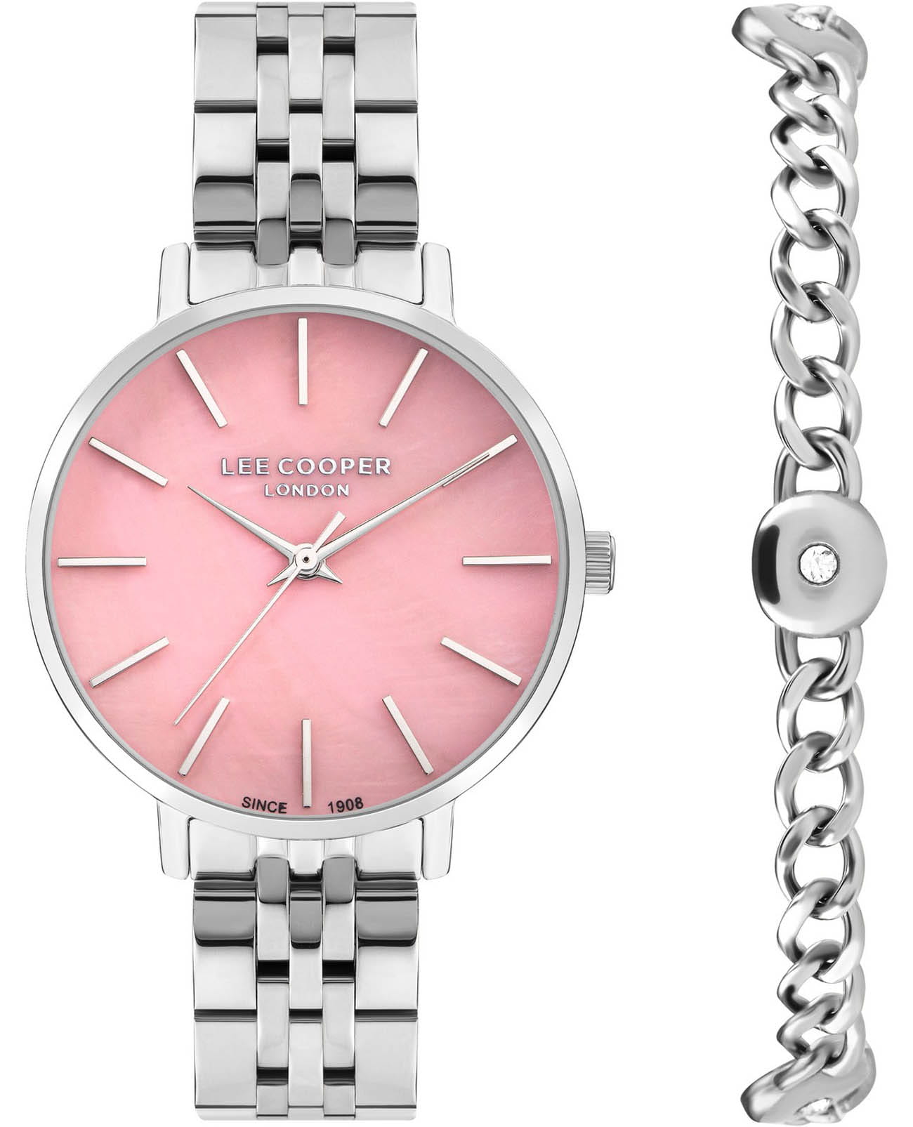 Женские часы Lee Cooper LC07857.380 — это стильное сочетание элегантности и современного дизайна. Изящный круглый корпус диаметром 34 мм выполнен из суперметалла серебристого цвета, что придает модели особый блеск. Розовый циферблат защищен минеральным стекломМинеральное стеклоМинеральное стекло представляет собой искусственно выращенный минерал кварца. Такое стекло отличается особой устойчивостью к повреждениям и царапинам. Уступает по некоторым качествам сапфировому стеклу., обеспечивающим устойчивость к царапинам. Метки в виде штрихов. Часы оснащены надежным кварцевым механизмом, а стальной браслет на раскладной застёжкеРаскладная застёжкаТакой тип застёжки используется только на браслетах из металла. Она никогда не раскрывается полностью, происходит разделение на 2 и более частей. Раскладывающая застёжка снизит вероятность потери часов к минимуму. гарантирует комфортную посадку на запястье. Водозащита 30 метров защищает модель от случайных брызг и дождя. В комплекте к часам идет дополнительный браслет. Lee Cooper  — отличный выбор для тех, кто ценит утонченность и качество.
