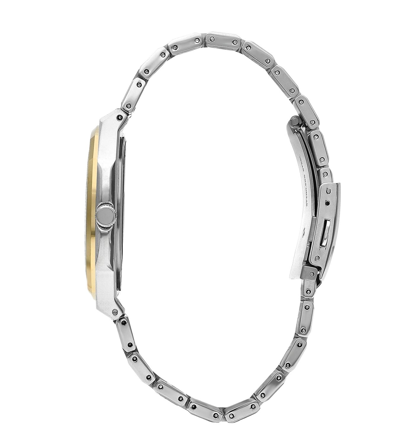 Мужские часы Lee Cooper LC07861.270 – это стильная модель, которая сочетает в себе современный дизайн и высокую функциональность. Часы идеально подходят для ежедневного ношения и могут стать отличным дополнением к любому наряду. Элегантный корпус часов диаметром 42 мм выполнен из суперметалла, а неподвижный безельБезельВнешний ободок, закрепляющий стекло. В спортивных часах так называется поворотное кольцо с делениями на циферблате, выполняет роль таймера – замеряет отрезки времени на шкале. Неподвижный безель – элемент декора. Однонаправленно вращающийся безель на дайверских часах позволяет фиксировать моменты погружения и выныривания на поверхность. с IP-покрытиемIP-покрытиеМетод ионного напыления. Демонстрирует повышенную устойчивость к истиранию, окислению и химическим веществам. Под воздействием высокого давления и температуры около 1500°C молекулы металла надёжно соединяются с частицами корпуса часов. придает модели особый блеск. Минеральное стеклоМинеральное стеклоМинеральное стекло представляет собой искусственно выращенный минерал кварца. Такое стекло отличается особой устойчивостью к повреждениям и царапинам. Уступает по некоторым качествам сапфировому стеклу. защищает изысканный циферблат от царапин, сохраняя его безупречный вид. Циферблат дополнен аккуратными стрелками с люминесцентным покрытиемЛюминесцентное покрытиеПозволяет считывать показания времени в темноте. Производители наносят на стрелки, часовые индексы, безель или поверхность циферблата светонакопительный состав, дающий холодное свечение., что гарантирует читаемость даже в условиях недостаточного освещения.  Механизм часов гарантирует точный ход и надежную работу, а надежный браслет из нержавеющей стали с раскладной застёжкойРаскладная застёжкаТакой тип застёжки используется только на браслетах из металла. Она никогда не раскрывается полностью, происходит разделение на 2 и более частей. Раскладывающая застёжка снизит вероятность потери часов к минимуму. обеспечивает комфортную фиксацию на запястье. Модель LC07861.270 станет прекрасным выбором для тех, кто ценит стиль и качество в аксессуарах.
