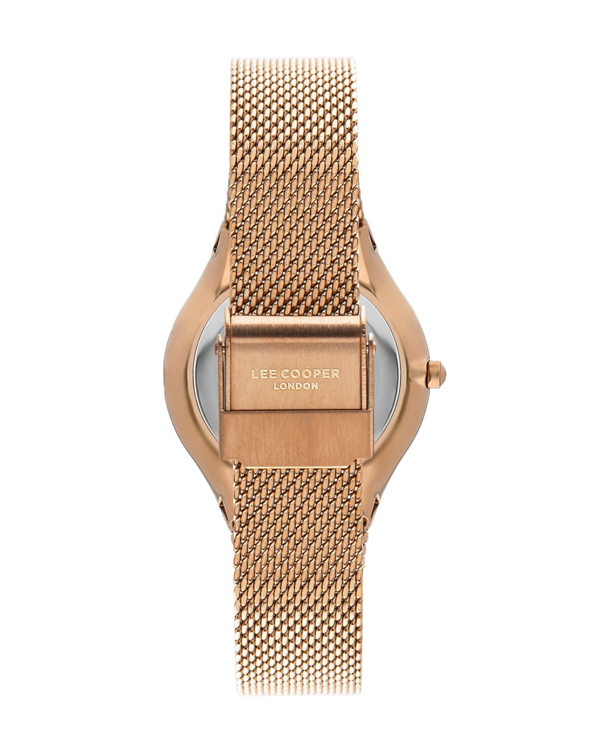 Женские часы Lee Cooper LC07862.430 — это стильное сочетание элегантности и современного дизайна. Изящный корпус диаметром 32 мм выполнен из суперметалла с IP-покрытиемIP-покрытиеМетод ионного напыления. Демонстрирует повышенную устойчивость к истиранию, окислению и химическим веществам. Под воздействием высокого давления и температуры около 1500°C молекулы металла надёжно соединяются с частицами корпуса часов. золотого цвета. Серый циферблат инкрустирован цирконами, что придает модели особый блеск и защищен минеральным стекломМинеральное стеклоМинеральное стекло представляет собой искусственно выращенный минерал кварца. Такое стекло отличается особой устойчивостью к повреждениям и царапинам. Уступает по некоторым качествам сапфировому стеклу., обеспечивающим устойчивость к царапинам. Центральные часовая, минутная стрелки. Часы оснащены надежным кварцевым механизмом. Стальной браслет с IP-покрытиемIP-покрытиеМетод ионного напыления. Демонстрирует повышенную устойчивость к истиранию, окислению и химическим веществам. Под воздействием высокого давления и температуры около 1500°C молекулы металла надёжно соединяются с частицами корпуса часов. с застежкой, выполненной в виде раскладного замкаРаскладной замокДанный вариант застежки используется только на часах с металлическим браслетом. Отличительная особенность такого крепления в том, что длина браслета становится универсальной и вы можете самостоятельно отрегулировать нужный вам размер – застежка просто двигается по браслету часов., гарантирующего комфортное и безопасное ношение. Водозащита 30 метров защищает модель от случайных брызг и дождя. Lee Cooper  — отличный выбор для тех, кто ценит утонченность и качество.