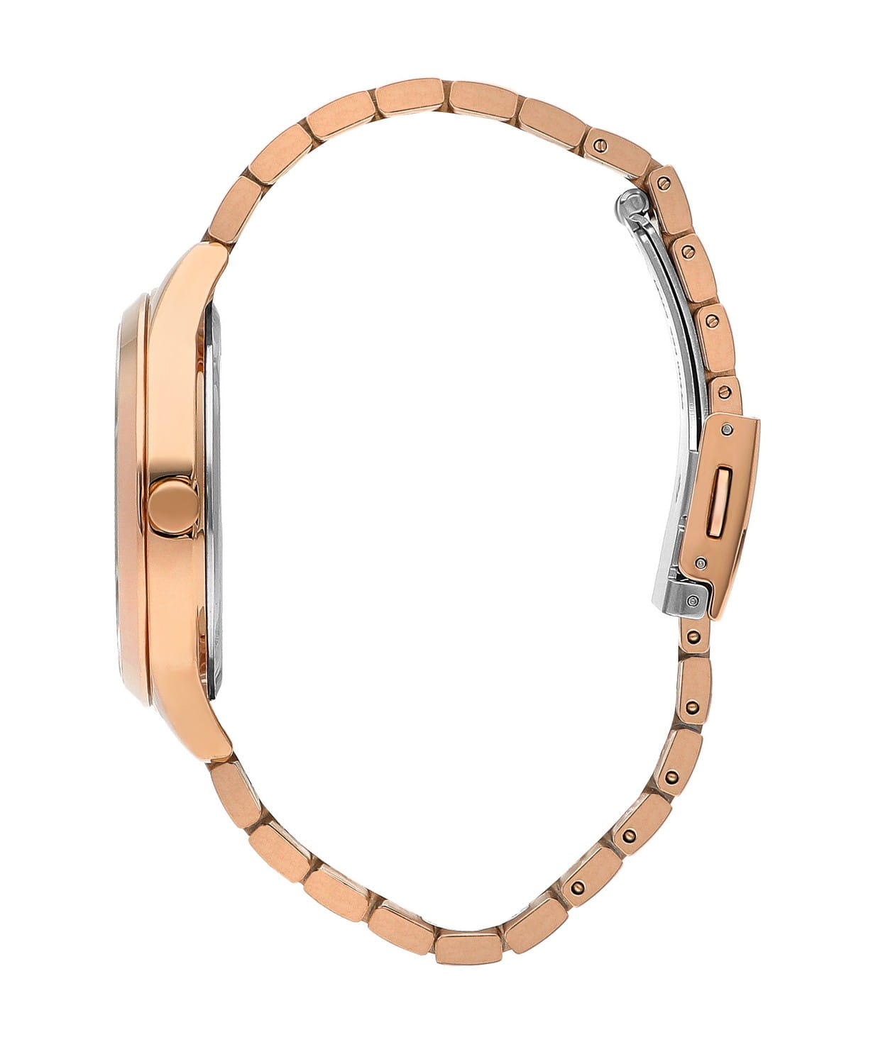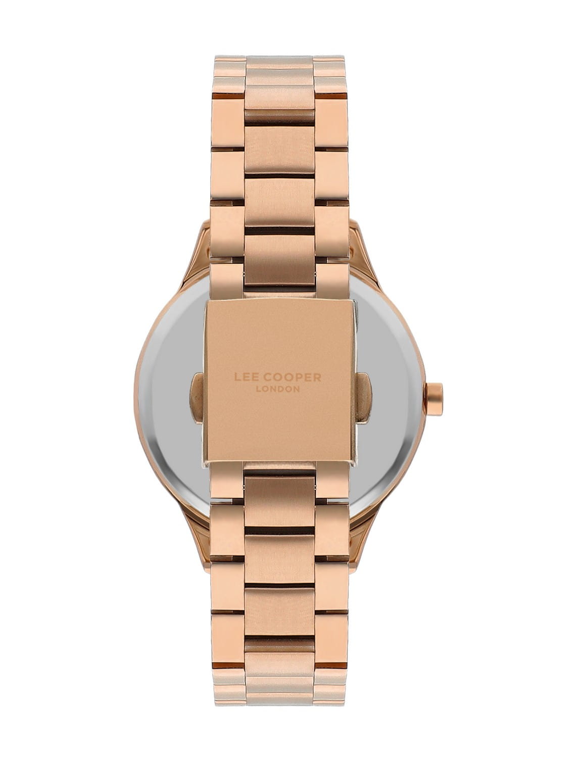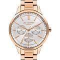 Женские часы Lee Cooper LC07865.430 — это стильное сочетание элегантности и современного дизайна. Круглый корпус диаметром 38 мм выполнен из суперметалла с IP-покрытиемIP-покрытиеМетод ионного напыления. Демонстрирует повышенную устойчивость к истиранию, окислению и химическим веществам. Под воздействием высокого давления и температуры около 1500°C молекулы металла надёжно соединяются с частицами корпуса часов. цвета розового золота, придающий модели особый блеск. Серебристый циферблат защищен минеральным стекломМинеральное стеклоМинеральное стекло представляет собой искусственно выращенный минерал кварца. Такое стекло отличается особой устойчивостью к повреждениям и царапинам. Уступает по некоторым качествам сапфировому стеклу., обеспечивающим устойчивость к царапинам. Часы оснащены надежным кварцевым механизмом, а стальной браслет с IP-покрытиемIP-покрытиеМетод ионного напыления. Демонстрирует повышенную устойчивость к истиранию, окислению и химическим веществам. Под воздействием высокого давления и температуры около 1500°C молекулы металла надёжно соединяются с частицами корпуса часов. на раскладной застёжкеРаскладная застёжкаТакой тип застёжки используется только на браслетах из металла. Она никогда не раскрывается полностью, происходит разделение на 2 и более частей. Раскладывающая застёжка снизит вероятность потери часов к минимуму. гарантирует комфортную посадку на запястье. Мультифункциональная модель с индикацией даты, дня недели, с дополнительным 24-х часовым индикатором. Водозащита 30 метров защищает модель от случайных брызг и дождя. Lee Cooper  — отличный выбор для тех, кто ценит утонченность и качество.