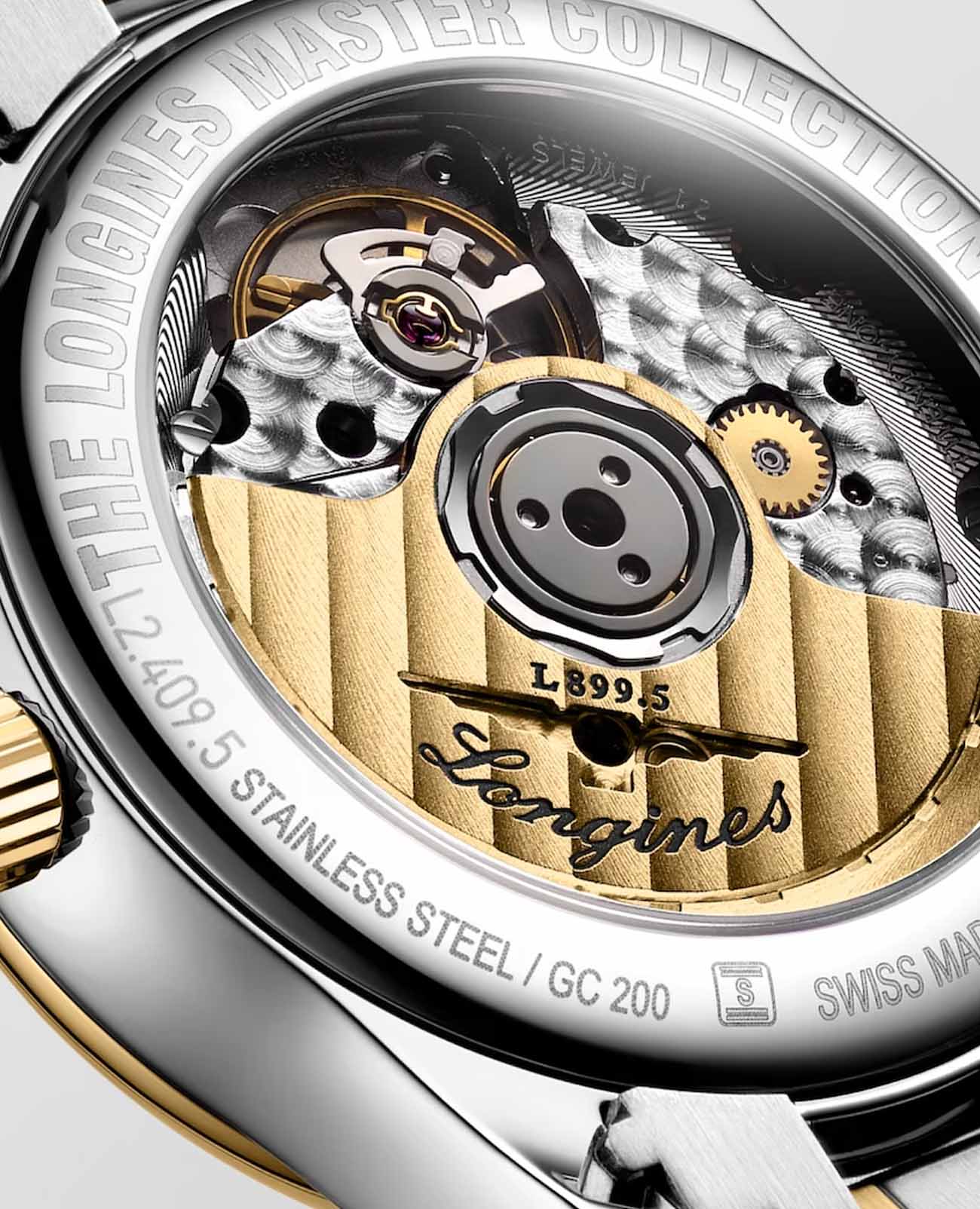 Женские швейцарские механические часы с автоподзаводом Longines Master Collection L2.409.5.87.7. Сапфировое стеклоСапфировое стеклоПрочный и надёжный материал из кристалла сапфира синтетического происхождения, характеризующийся особой твёрдостью и устойчивостью к царапинам и повреждениям. устойчивое к появлению царапин, обладающее высокой прозрачностью. Корпус часов изготовлен из нержавеющей стали. БезельБезельВнешний ободок, закрепляющий стекло. В спортивных часах так называется поворотное кольцо с делениями на циферблате, выполняет роль таймера – замеряет отрезки времени на шкале. Неподвижный безель – элемент декора. Однонаправленно вращающийся безель на дайверских часах позволяет фиксировать моменты погружения и выныривания на поверхность. с 18-каратным золотом18-каратное золотоОбозначение по каратной системе пробирования, оно показывает, сколько драгоценного металла содержится в изделии. 18 карат - в составе 75% чистого золота, соответствует 750 пробе.