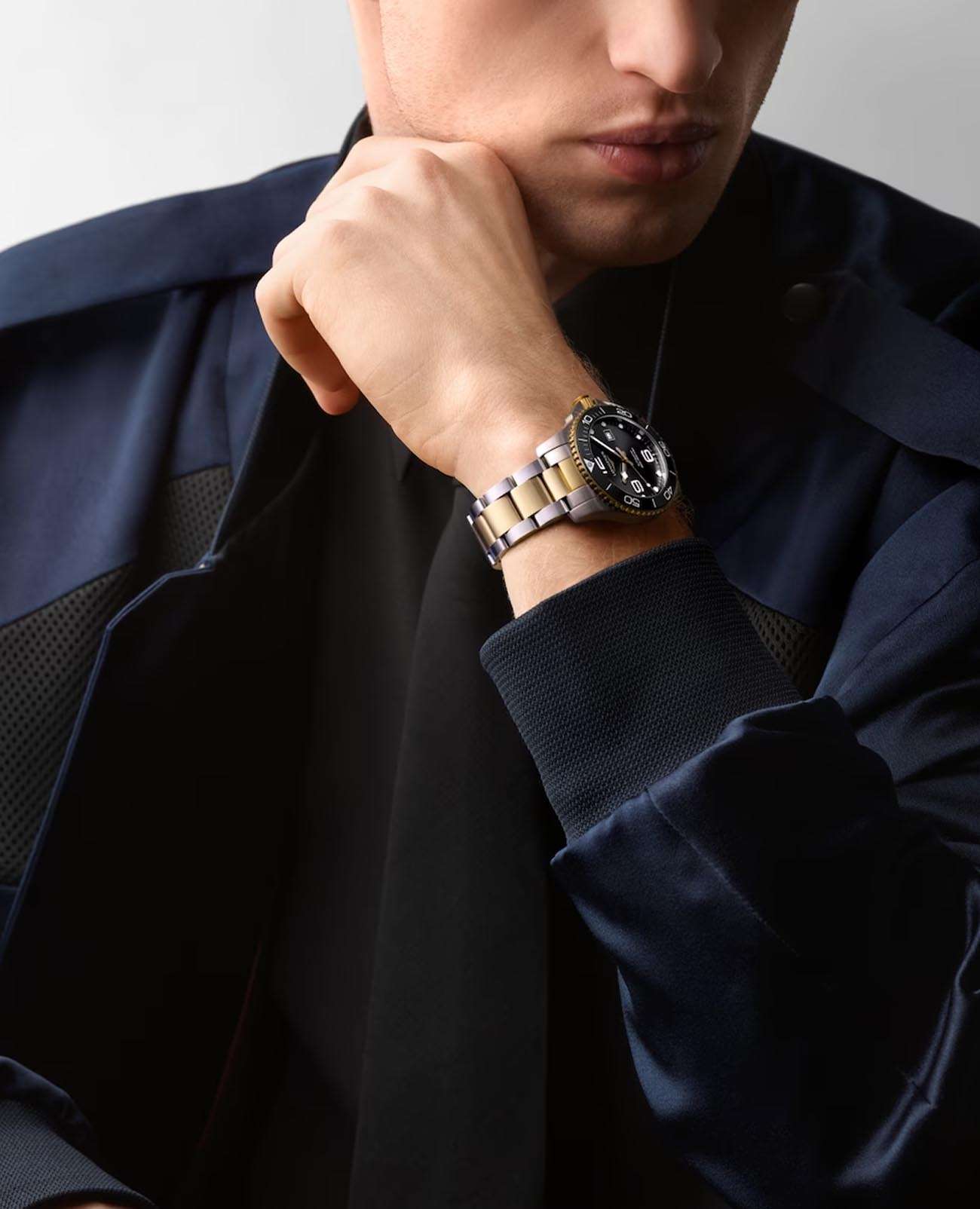 Швейцарские механические часы для дайвинга Longines HydroConquest L3.782.3.56.7. Сапфировое стеклоСапфировое стеклоПрочный и надёжный материал из кристалла сапфира синтетического происхождения, характеризующийся особой твёрдостью и устойчивостью к царапинам и повреждениям. с многослойным антибликовым покрытием с обеих сторон, устойчивое к появлению царапин, обладающее высокой прозрачностью. Корпус часов изготовлен из стали. Вращающийся безельБезельВнешний ободок, закрепляющий стекло. В спортивных часах так называется поворотное кольцо с делениями на циферблате, выполняет роль таймера – замеряет отрезки времени на шкале. Неподвижный безель – элемент декора. Однонаправленно вращающийся безель на дайверских часах позволяет фиксировать моменты погружения и выныривания на поверхность. из стали с PVD-покрытиемPVDУльтратонкое покрытие наносится в технике вакуумного напыления, сочетает в себе нитрид титана особой прочности со слоем золота или оксида хрома. Несёт в себе декоративную или защитную функцию. и керамики, защищенный от царапин, никогда не изнашивается и не выцветает. Стрелки и метки с люминесцентным покрытиемЛюминесцентное покрытиеПозволяет считывать показания времени в темноте. Производители наносят на стрелки, часовые индексы, безель или поверхность циферблата светонакопительный состав, дающий холодное свечение.. Окошко даты находится в положении 3 часов. Класс водозащиты: 300 метров, позволит плавать, нырять и заниматься другими водными видами спорта. Стальной браслет с частичным PVD-покрытиемPVDУльтратонкое покрытие наносится в технике вакуумного напыления, сочетает в себе нитрид титана особой прочности со слоем золота или оксида хрома. Несёт в себе декоративную или защитную функцию. на раскладной застёжкеРаскладная застёжкаТакой тип застёжки используется только на браслетах из металла. Она никогда не раскрывается полностью, происходит разделение на 2 и более частей. Раскладывающая застёжка снизит вероятность потери часов к минимуму..