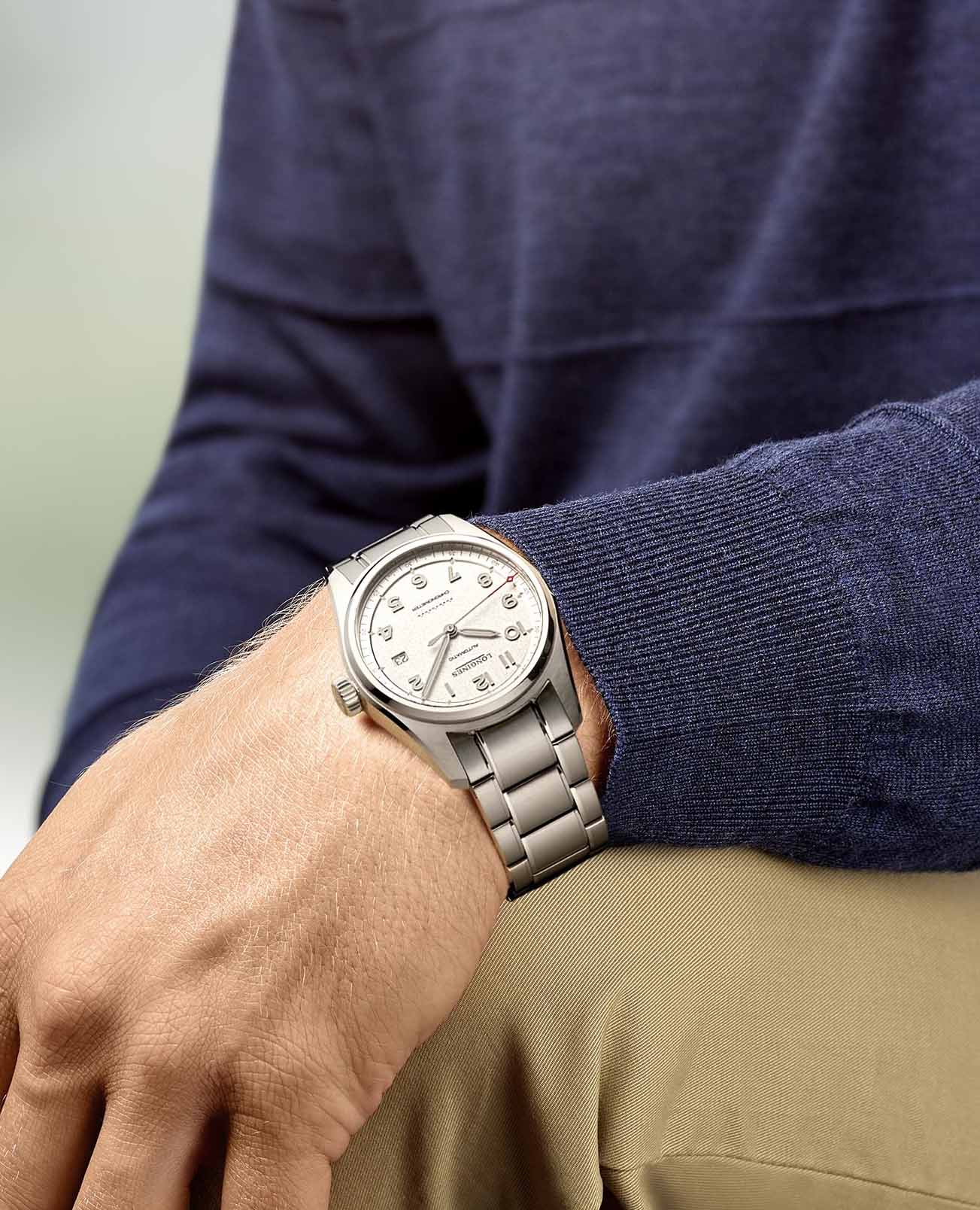 Дополнительные особенности включают сапфировое стеклоСапфировое стеклоПрочный и надёжный материал из кристалла сапфира синтетического происхождения, характеризующийся особой твёрдостью и устойчивостью к царапинам и повреждениям. с двухсторонним антибликовым покрытиемАнтибликовое покрытиеСлой оксида металла в 0,13-0,3 микрон, благодаря которому стекло часов не бликует и не отражает свет. Антибликовое покрытие уменьшает отражение света в 10 раз, обеспечивая отличную читаемость показателей циферблата., что обеспечивает отличную видимость циферблата в любых условиях. Стрелки и метки с люминесцентнымЛюминесцентное покрытиеПозволяет считывать показания времени в темноте. Производители наносят на стрелки, часовые индексы, безель или поверхность циферблата светонакопительный состав, дающий холодное свечение. покрытием облегчают чтение времени в темноте. Часы обладают классом водозащиты 100 метров, что позволяет использовать их для плавания и занятий водными видами спорта. Стальной браслет с застёжкой «бабочка» с кнопкамиЗастёжка "бабочка"Такой вид застёжки дополняется предохранителями, помогающими избежать случайного раскрытия браслета. Обладают изящным исполнением. придает часам дополнительную надежность и комфорт при ношении.