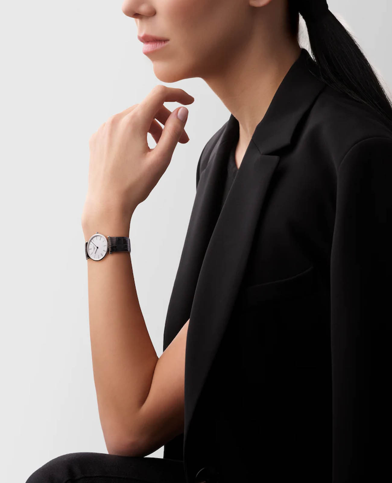 Ремешок из кожи аллигатора, искусно выполненный на стандартной застежке, добавляет часам изысканности и комфорта. Этот ремешок не только выглядит роскошно, но и обеспечивает надежное прилегание, что делает ношение часов удобным на протяжении всего дня.