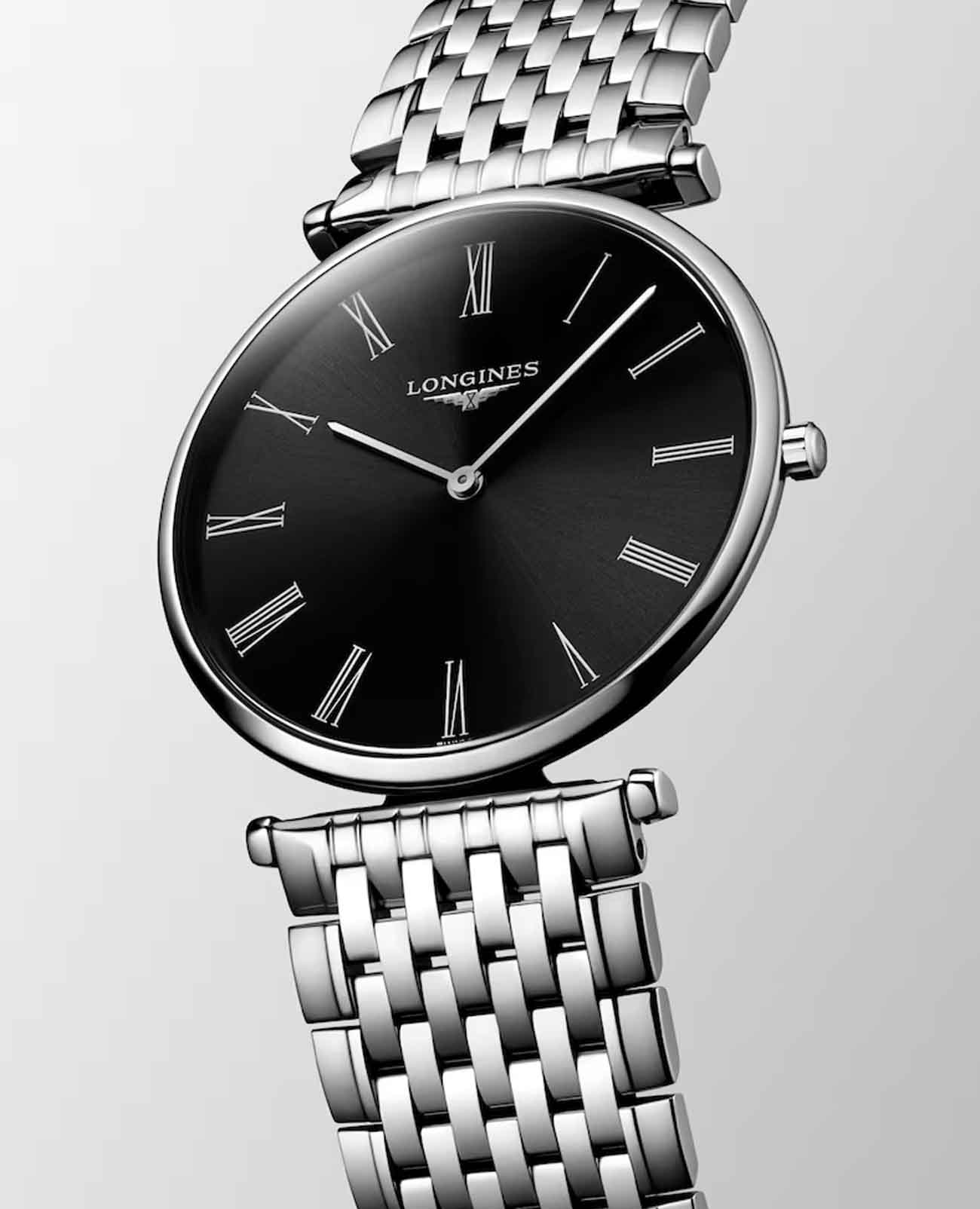 Женские швейцарские часы Longines La Grande Classique L4.755.4.51.6 – это воплощение элегантности и утонченности, идеально подходящее для создания делового образа. Их компактный черный циферблат, украшенный винтажными римскими цифрами, придает часам особый шарм и изысканность. Особенное внимание привлекает браслет из стали застёжке «бабочка» с кнопкамиЗастёжка "бабочка"Такой вид застёжки дополняется предохранителями, помогающими избежать случайного раскрытия браслета. Обладают изящным исполнением. с необычным плетением, который не только выглядит стильно, но и обеспечивает комфортное ношение.