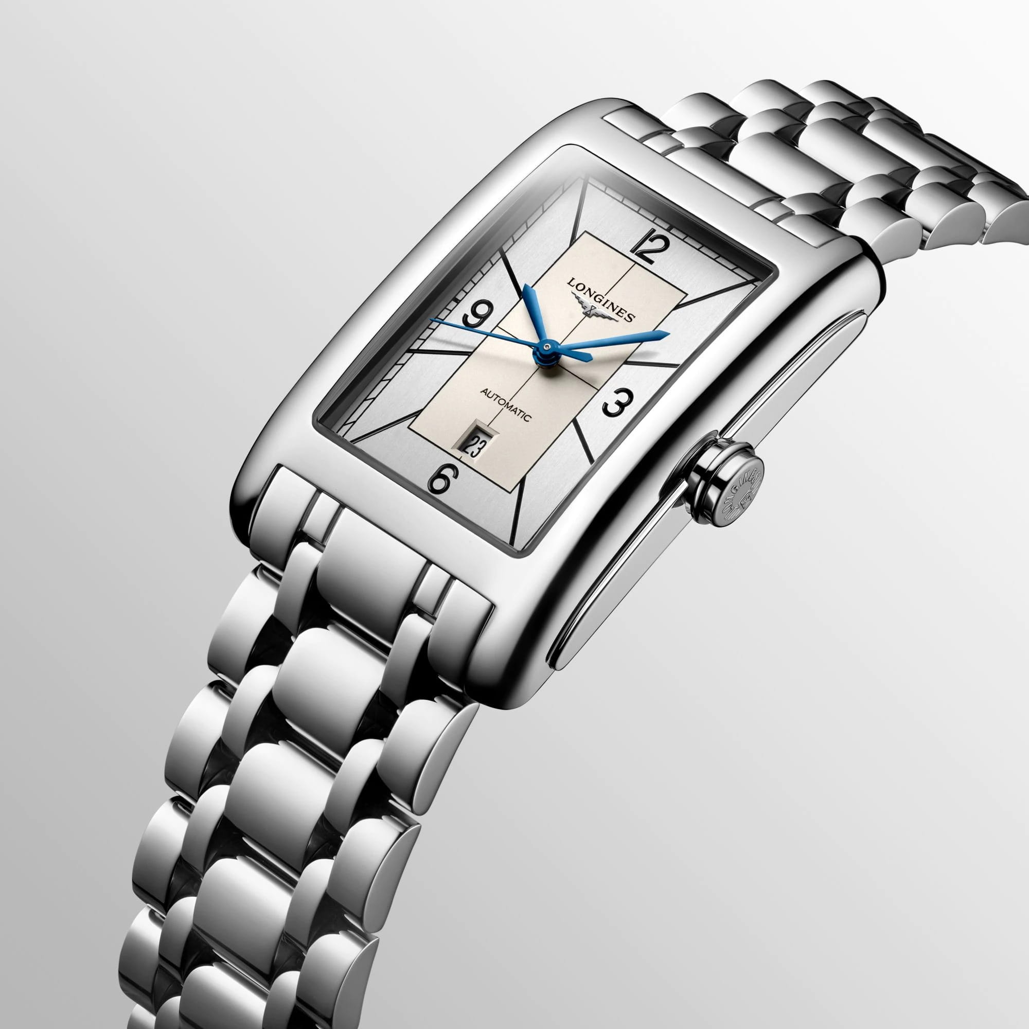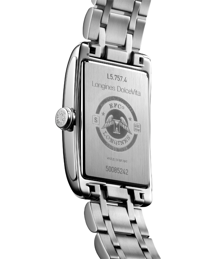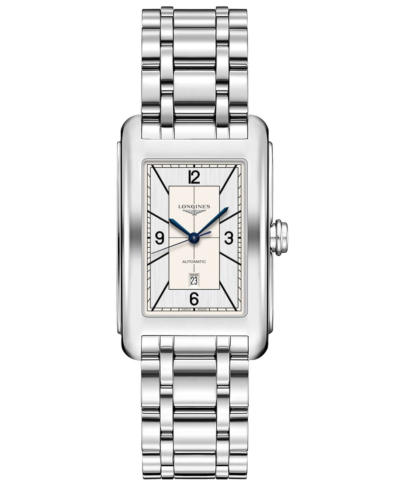 Женские механические швейцарские часы с автоподзаводом Longines DolceVita L5.757.4.73.6. Сапфировое стеклоСапфировое стеклоПрочный и надёжный материал из кристалла сапфира синтетического происхождения, характеризующийся особой твёрдостью и устойчивостью к царапинам и повреждениям. устойчивое к появлению царапин, обладающее высокой прозрачностью. Корпус из нержавеющей стали. Автоматический механизм с частотой баланса 28 800 полуколебаний в час и запасом хода, которого хватает примерно на 45 часов работы. Окошко даты в положении 6 часов. Класс водозащиты: 30 метров, позволит защитить корпус от случайных брызг или капель дождя. Стальной браслет на застёжке «бабочка» с кнопкамиЗастёжка "бабочка"Такой вид застёжки дополняется предохранителями, помогающими избежать случайного раскрытия браслета. Обладают изящным исполнением. .