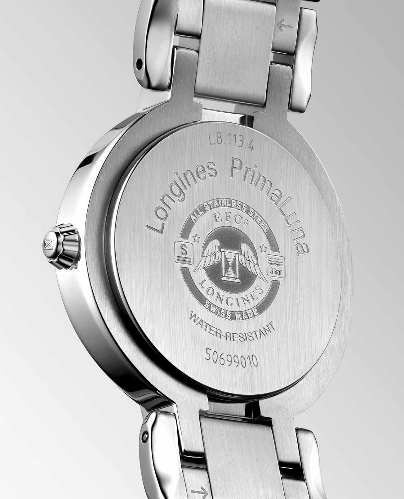 Женственные швейцарские механические часы с автоподзаводом из коллекции Longines PrimaLuna L8.113.4.71.6 воплощают в себе утончённое мастерство и неповторимую женственность. Циферблат этих часов защищён сапфировым стекломСапфировое стеклоПрочный и надёжный материал из кристалла сапфира синтетического происхождения, характеризующийся особой твёрдостью и устойчивостью к царапинам и повреждениям., которое устойчиво к появлению царапин и обладает высокой прозрачностью, что позволяет наслаждаться каждым элементом циферблата в его полной красоте.