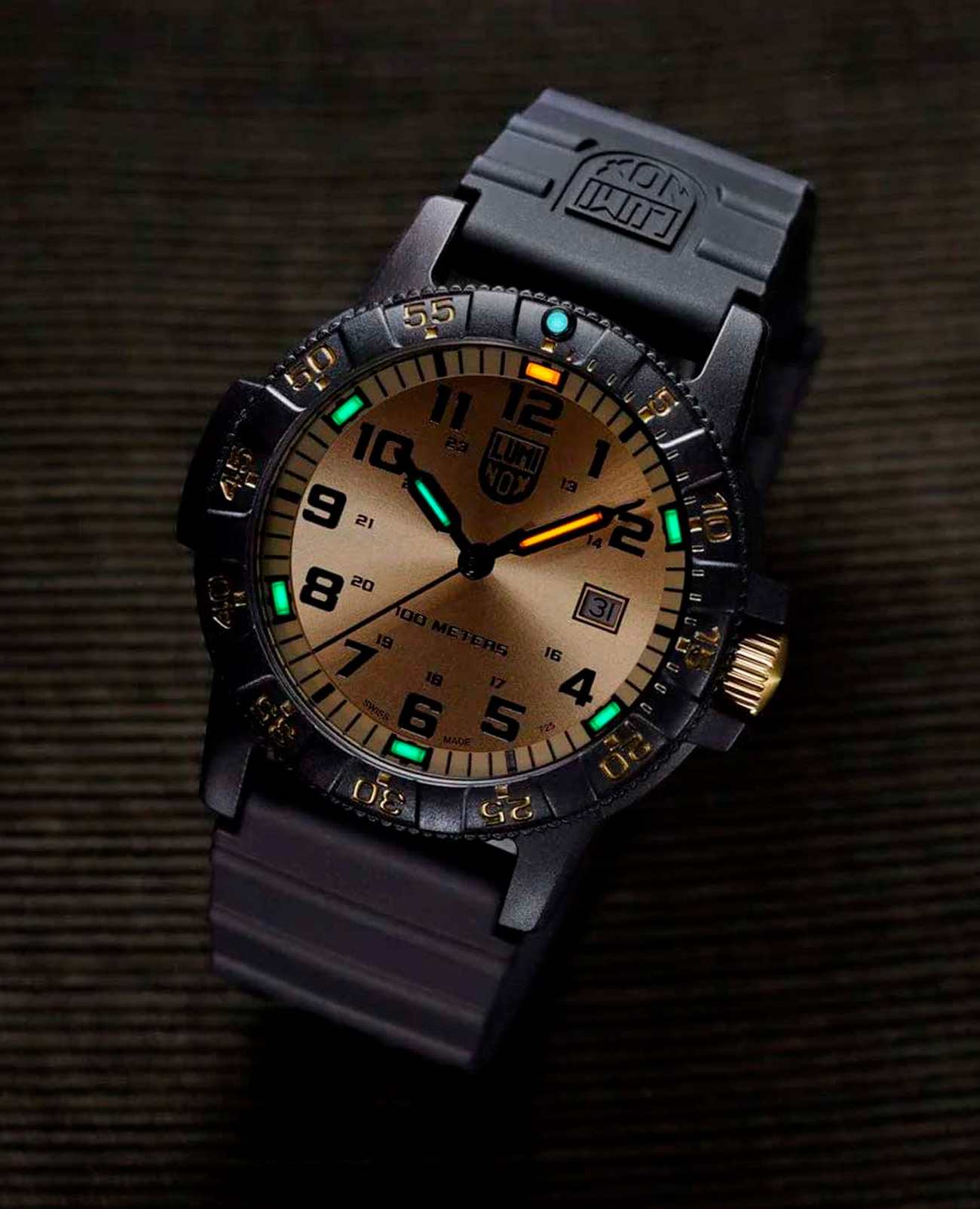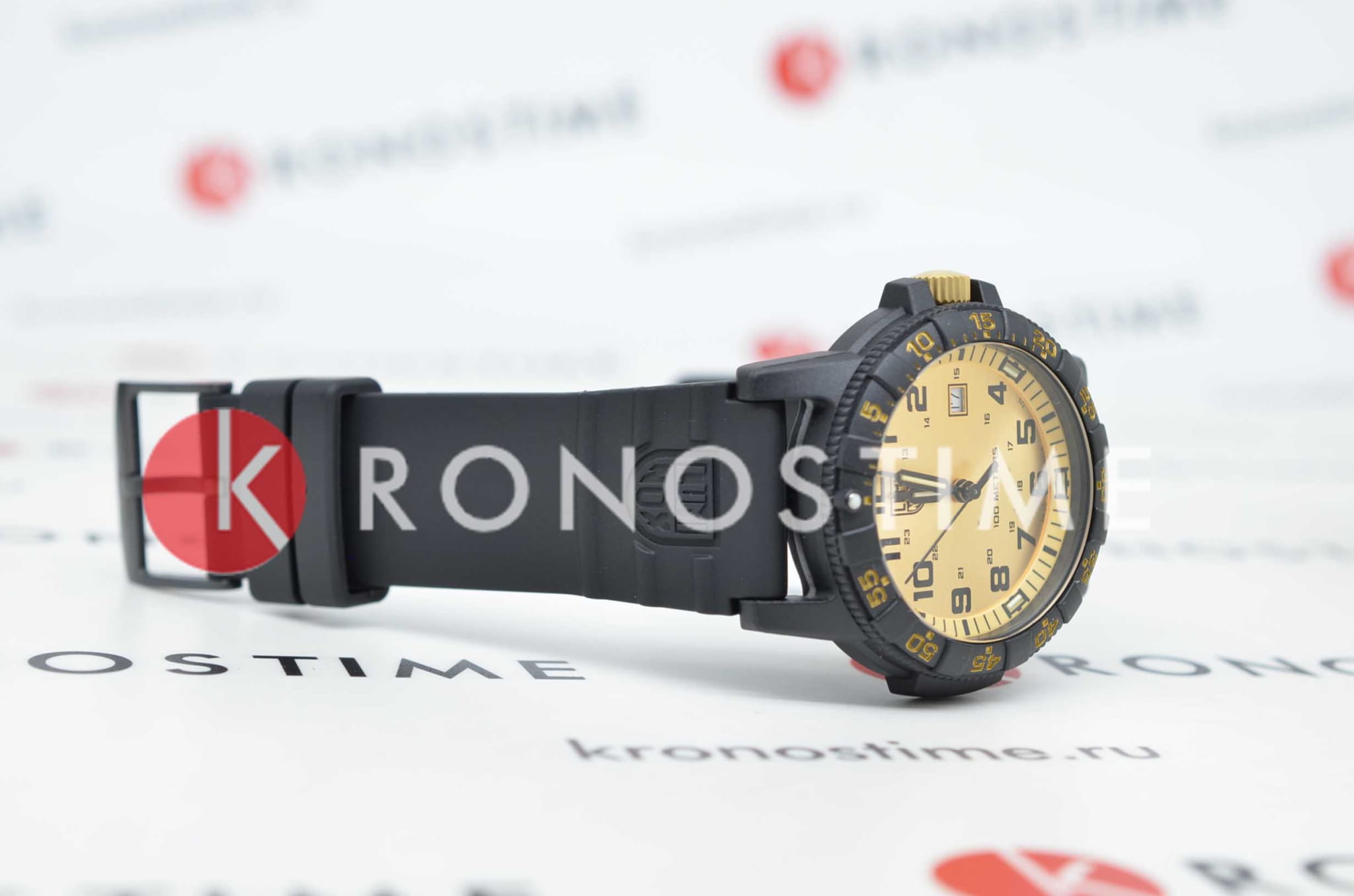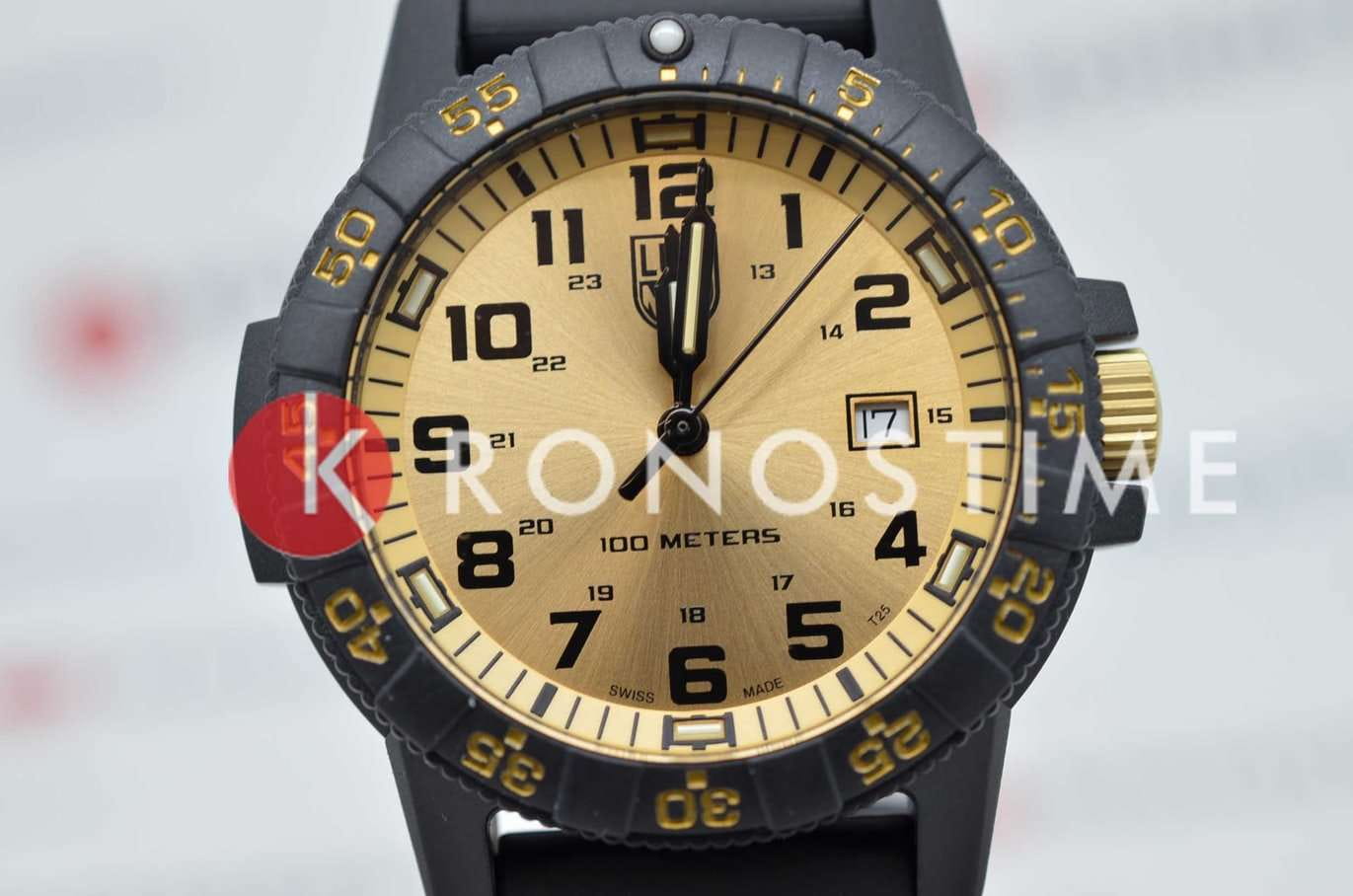 Мужские наручные часы Luminox XS.0325.GP из коллекции Leatherback SEA Turtle Giant сочетают в себе спортивный дизайн и надежность швейцарского качества. Модель обладает круглым корпусом диаметром 44 мм, изготовленным из карбонаКарбонОт «carbon», «carbone» - углерод, углепластик - полимерный композиционный материал из переплетённых под определенным углом между собой нитей углеродного волокна, применяется для изготовления лёгких, но прочных деталей. В часах часто используют для украшения циферблатов и ремешков. Так же карбон используется в изготовлении корпусов. Такие корпуса обладают антикоррозионным свойством, не поддаются электромагнитному излучению, обладают повышенной прочностью и противоударностью. (CARBONOX™), что обеспечивает высокую устойчивость к внешним воздействиям при сохранении легкости. Циферблат золотистого цвета украшен контрастными черными метками и стрелками с , гарантирующим постоянную видимость времени даже в условиях низкой освещенности. Часы оснащены кварцевым механизмом швейцарского производства, обеспечивающим точность хода ±15 секунд в месяц. Защиту циферблата обеспечивает прочное минеральное стеклоМинеральное стеклоМинеральное стекло представляет собой искусственно выращенный минерал кварца. Такое стекло отличается особой устойчивостью к повреждениям и царапинам. Уступает по некоторым качествам сапфировому стеклу., устойчивое к царапинам и механическим повреждениям. Водонепроницаемость модели достигает 10 атмосфер (100 метров), что делает их подходящими для плавания и активного отдыха на воде. Модель также оснащена безелемБезельВнешний ободок, закрепляющий стекло. В спортивных часах так называется поворотное кольцо с делениями на циферблате, выполняет роль таймера – замеряет отрезки времени на шкале. Неподвижный безель – элемент декора. Однонаправленно вращающийся безель на дайверских часах позволяет фиксировать моменты погружения и выныривания на поверхность. с односторонним вращением, что добавляет функциональности при использовании в водных условиях. Ремешок выполнен из полиуретана (PU) с нержавеющей стальной застежкой, что обеспечивает комфортное ношение в течение дня. Дополнительно часы имеют окно даты в положении «3 часа», что делает их практичными для повседневного использования.