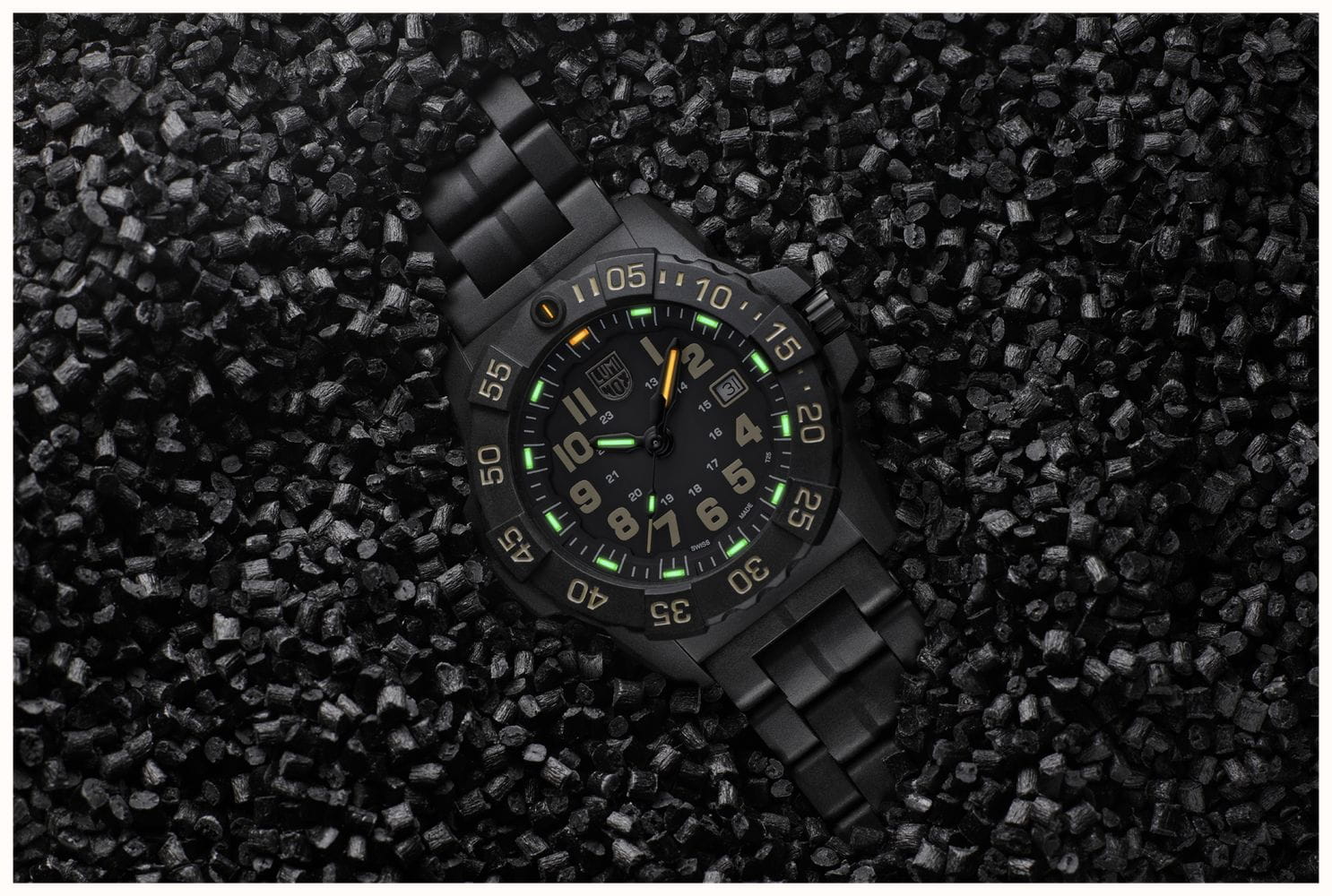 Мужские наручные часы Luminox XS.3510 из коллекции Navy SEAL сочетают в себе спортивный дизайн и надежность швейцарского качества . Модель обладает круглым корпусом диаметром 45 мм, изготовленным из карбонаКарбонОт «carbon», «carbone» - углерод, углепластик - полимерный композиционный материал из переплетённых под определенным углом между собой нитей углеродного волокна, применяется для изготовления лёгких, но прочных деталей. В часах часто используют для украшения циферблатов и ремешков. Так же карбон используется в изготовлении корпусов. Такие корпуса обладают антикоррозионным свойством, не поддаются электромагнитному излучению, обладают повышенной прочностью и противоударностью. (CARBONOX™), что обеспечивает высокую устойчивость к внешним воздействиям при сохранении легкости . Циферблат черного цвета украшен контрастными метками и стрелками с люминесцентным покрытиемЛюминесцентное покрытиеПозволяет считывать показания времени в темноте. Производители наносят на стрелки, часовые индексы, безель или поверхность циферблата светонакопительный состав, дающий холодное свечение., гарантирующим постоянную видимость времени даже в условиях низкой освещенности благодаря системе LLTLLTLLT — это автономный механизм подсветки, основанный на использовании микроскопических газонаполненных элементов. Специальные герметичные капсулы из боросиликатного стекла, интегрированные в циферблат, генерируют свечение без необходимости подключения к внешним источникам энергии. Для их работы не требуется ни дополнительный свет, ни механическое воздействие (например, нажатие кнопки). Свечение возникает благодаря химическому процессу: реакция между тритием, заключенным в капсулах, и люминофорным покрытием создает стабильное автономное освещение. Технология обеспечивает энергетическую независимость и долговечность подсветки. (микрогазовые огни) . Часы оснащены кварцевым механизмом швейцарского производства Ronda 715, обеспечивающим точность хода ±15 секунд в месяц . Защиту циферблата обеспечивает прочное минеральное стеклоМинеральное стеклоМинеральное стекло представляет собой искусственно выращенный минерал кварца. Такое стекло отличается особой устойчивостью к повреждениям и царапинам. Уступает по некоторым качествам сапфировому стеклу. с антибликовым покрытиемАнтибликовое покрытиеСлой оксида металла в 0,13-0,3 микрон, благодаря которому стекло часов не бликует и не отражает свет. Антибликовое покрытие уменьшает отражение света в 10 раз, обеспечивая отличную читаемость показателей циферблата., устойчивое к царапинам и механическим повреждениям . Водонепроницаемость модели достигает 20 атмосфер (200 метров), что делает их подходящими для плавания и активного отдыха на воде, включая дайвинг . Модель также оснащена безелемБезельВнешний ободок, закрепляющий стекло. В спортивных часах так называется поворотное кольцо с делениями на циферблате, выполняет роль таймера – замеряет отрезки времени на шкале. Неподвижный безель – элемент декора. Однонаправленно вращающийся безель на дайверских часах позволяет фиксировать моменты погружения и выныривания на поверхность. с односторонним вращением, что добавляет функциональности при использовании в водных условиях . Ремешок выполнен из черного полиуретана, что обеспечивает комфортное ношение в т