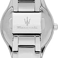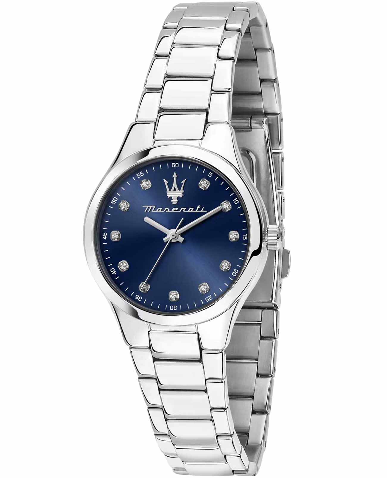 Maserati Attrazione R8853151506 — воплощение стиля и функциональности для современных женщин, ценящих качество и элегантность. Корпус диаметром 30 мм выполнен из нержавеющей стали, обеспечивая прочность и долговечность.Минеральное стеклоМинеральное стеклоМинеральное стекло представляет собой искусственно выращенный минерал кварца. Такое стекло отличается особой устойчивостью к повреждениям и царапинам. Уступает по некоторым качествам сапфировому стеклу. надежно защищает синий циферблат с изящными рисками, придавая часам утонченный вид. Благодаря водостойкости до 50 метров (50 АТМ), эти часы станут вашим надежным спутником в любых условиях, будь то деловая встреча или активный отдых. Завершающий штрих — стальной браслет с раскладной застёжкойРаскладная застёжкаТакой тип застёжки используется только на браслетах из металла. Она никогда не раскрывается полностью, происходит разделение на 2 и более частей. Раскладывающая застёжка снизит вероятность потери часов к минимуму., который подчеркивает общий стиль, обеспечивая комфорт и надежность в носке. Циферблат выполнен по технологии Sunray (солнечные лучи) и украшен фирменным логотипом «Maserati». Метки в виде точек, инкрустированные кристаллами.
