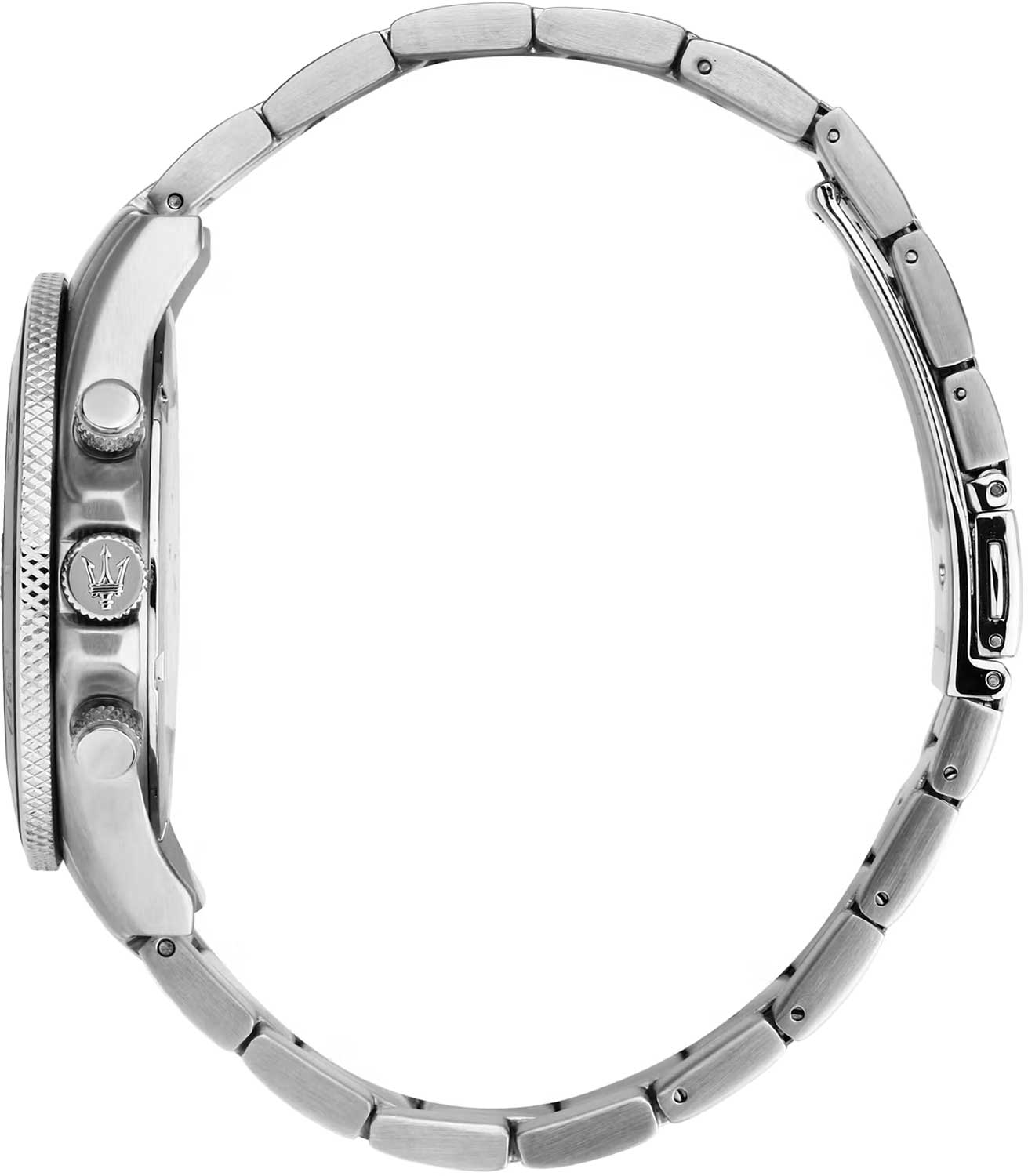 Мужские итальянские часы- хронографХронографФункция позволяет измерять отрезки времени с особой точностью: часы, минуты, секунды. Верным признаком хронографа является наличие на циферблате 3 дополнительных окошек-счётчиков. Maserati Competizione Chronograph R8873600009, кварцевый механизм с высокой точностью. Корпус часов изготовлен из стали. БезельБезельВнешний ободок, закрепляющий стекло. В спортивных часах так называется поворотное кольцо с делениями на циферблате, выполняет роль таймера – замеряет отрезки времени на шкале. Неподвижный безель – элемент декора. Однонаправленно вращающийся безель на дайверских часах позволяет фиксировать моменты погружения и выныривания на поверхность. из стали с PVD-покрытиемPVDУльтратонкое покрытие наносится в технике вакуумного напыления, сочетает в себе нитрид титана особой прочности со слоем золота или оксида хрома. Несёт в себе декоративную или защитную функцию.. Стрелки с люминесцентным покрытиемЛюминесцентное покрытиеПозволяет считывать показания времени в темноте. Производители наносят на стрелки, часовые индексы, безель или поверхность циферблата светонакопительный состав, дающий холодное свечение.. Класс водозащиты: 100 метров, позволит плавать, нырять и заниматься другими водными видами спорта. Стальной браслет на раскладной застёжкойРаскладная застёжкаТакой тип застёжки используется только на браслетах из металла. Она никогда не раскрывается полностью, происходит разделение на 2 и более частей. Раскладывающая застёжка снизит вероятность потери часов к минимуму..