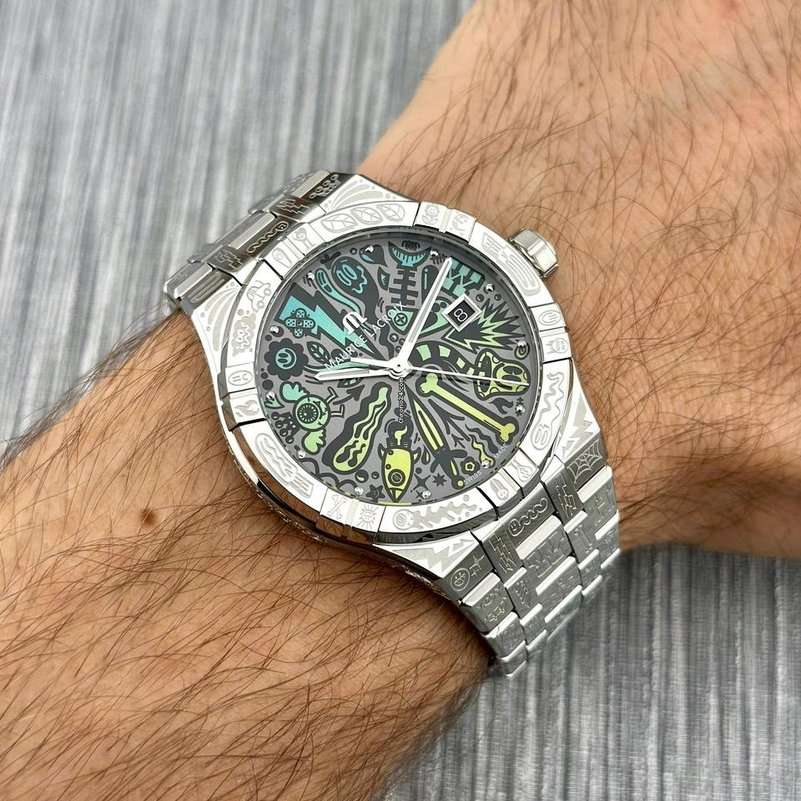 Швейцарские часы Maurice Lacroix Aikon Automatic AI6008-SS009-090-1, воплощающие современный стиль и безупречное швейцарское качество. Часы оснащены корпусом из нержавеющей стали диаметром 42 мм и высотой 11 мм, с чередованием матовой и полированной отделки. Уникальный узор Wotto, выгравированный на корпусе, добавляет модели индивидуальности. Сапфировое стеклоСапфировое стеклоПрочный и надёжный материал из кристалла сапфира синтетического происхождения, характеризующийся особой твёрдостью и устойчивостью к царапинам и повреждениям. с двойным антибликовым покрытиемАнтибликовое покрытиеСлой оксида металла в 0,13-0,3 микрон, благодаря которому стекло часов не бликует и не отражает свет. Антибликовое покрытие уменьшает отражение света в 10 раз, обеспечивая отличную читаемость показателей циферблата. надежно защищает серый циферблат с вертикальным градиентом от синего к желтому, декорирован узором Wotto и черными акцентами. Часовые маркеры выполнены в виде родиевых точек. На 3 часах расположено окошко с датой, добавляя функциональности. Часы снабжены задней крышкой с сапфировым стеклом, позволяющим увидеть изысканно декорированный автоматический механизм ML115, обладающий запасом хода в 38 часов. БезельБезельВнешний ободок, закрепляющий стекло. В спортивных часах так называется поворотное кольцо с делениями на циферблате, выполняет роль таймера – замеряет отрезки времени на шкале. Неподвижный безель – элемент декора. Однонаправленно вращающийся безель на дайверских часах позволяет фиксировать моменты погружения и выныривания на поверхность. с узнаваемым дизайном из шести "когтей" и завинчивающаяся заводная головка подчеркивают уверенный характер модели. Часы водонепроницаемы до 20 ATM, что делает их отличным выбором для активного образа жизни. Стрелки с люминесцентным покрытиемЛюминесцентное покрытиеПозволяет считывать показания времени в темноте. Производители наносят на стрелки, часовые индексы, безель или поверхность циферблата светонакопительный состав, дающий холодное свечение., что облегчает чтение времени даже в условиях слабого освещения. Часы комплектуются браслетом из нержавеющей стали с такими же узорами, как и на корпусе, и застежка «бабочка»Застёжка "бабочка"Такой вид застёжки дополняется предохранителями, помогающими избежать случайного раскрытия браслета. Обладают изящным исполнением. , раскладывающаяся при нажатии кнопок двойной блокировки завершают образ, обеспечивая удобство и стиль.
