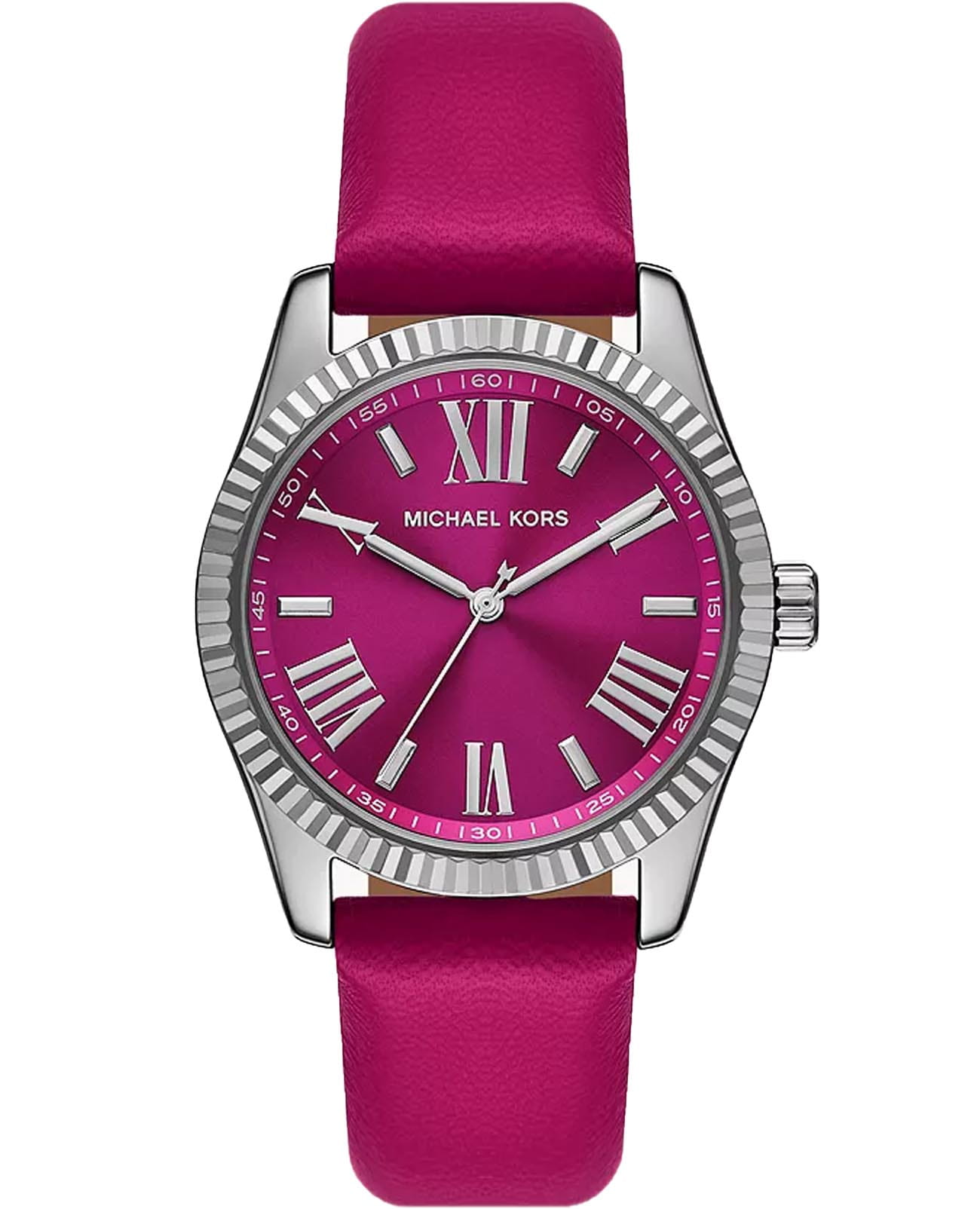 Женские американские часы с минеральным стекломМинеральное стеклоМинеральное стекло представляет собой искусственно выращенный минерал кварца. Такое стекло отличается особой устойчивостью к повреждениям и царапинам. Уступает по некоторым качествам сапфировому стеклу. Michael Kors Lexington MK4749, кварцевый механизм с высокой точностью. Корпус часов изготовлен из нержавеющей стали. БезельБезельВнешний ободок, закрепляющий стекло. В спортивных часах так называется поворотное кольцо с делениями на циферблате, выполняет роль таймера – замеряет отрезки времени на шкале. Неподвижный безель – элемент декора. Однонаправленно вращающийся безель на дайверских часах позволяет фиксировать моменты погружения и выныривания на поверхность. с алмазной гранью. Метки в виде штрихов и римских цифр. Заводная головка с защитой. Класс водозащиты: 100 метров, позволит плавать, нырять и заниматься другими водными видами спорта. Кожаный ремешок на стандартной застёжке.