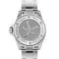 Женские швейцарские механические часы с сапфировым стеклом Mido Ocean Star 36.5 M026.207.11.041.00, механический механизм (автоматический калибр) с высокой точностью. Сапфировое стеклоСапфировое стеклоПрочный и надёжный материал из кристалла сапфира синтетического происхождения, характеризующийся особой твёрдостью и устойчивостью к царапинам и повреждениям. устойчивое к появлению царапин, обладающее высокой прозрачностью. Корпус часов изготовлен из стали. Вращающийся безельБезельВнешний ободок, закрепляющий стекло. В спортивных часах так называется поворотное кольцо с делениями на циферблате, выполняет роль таймера – замеряет отрезки времени на шкале. Неподвижный безель – элемент декора. Однонаправленно вращающийся безель на дайверских часах позволяет фиксировать моменты погружения и выныривания на поверхность. из нержавеющей стали с PVDPVDУльтратонкое покрытие наносится в технике вакуумного напыления, сочетает в себе нитрид титана особой прочности со слоем золота или оксида хрома. Несёт в себе декоративную или защитную функцию. покрытием и керамики с покрытием Superluminova. Циферблат украшают метки с бриллиантами. Стрелки с люминесцентным покрытиемЛюминесцентное покрытиеПозволяет считывать показания времени в темноте. Производители наносят на стрелки, часовые индексы, безель или поверхность циферблата светонакопительный состав, дающий холодное свечение.. Окошко в положении 6 часов. Класс водозащиты: 200 метров, позволит плавать, нырять и заниматься другими водными видами спорта. Стальной браслет на раскладной застёжкеРаскладная застёжкаТакой тип застёжки используется только на браслетах из металла. Она никогда не раскрывается полностью, происходит разделение на 2 и более частей. Раскладывающая застёжка снизит вероятность потери часов к минимуму..