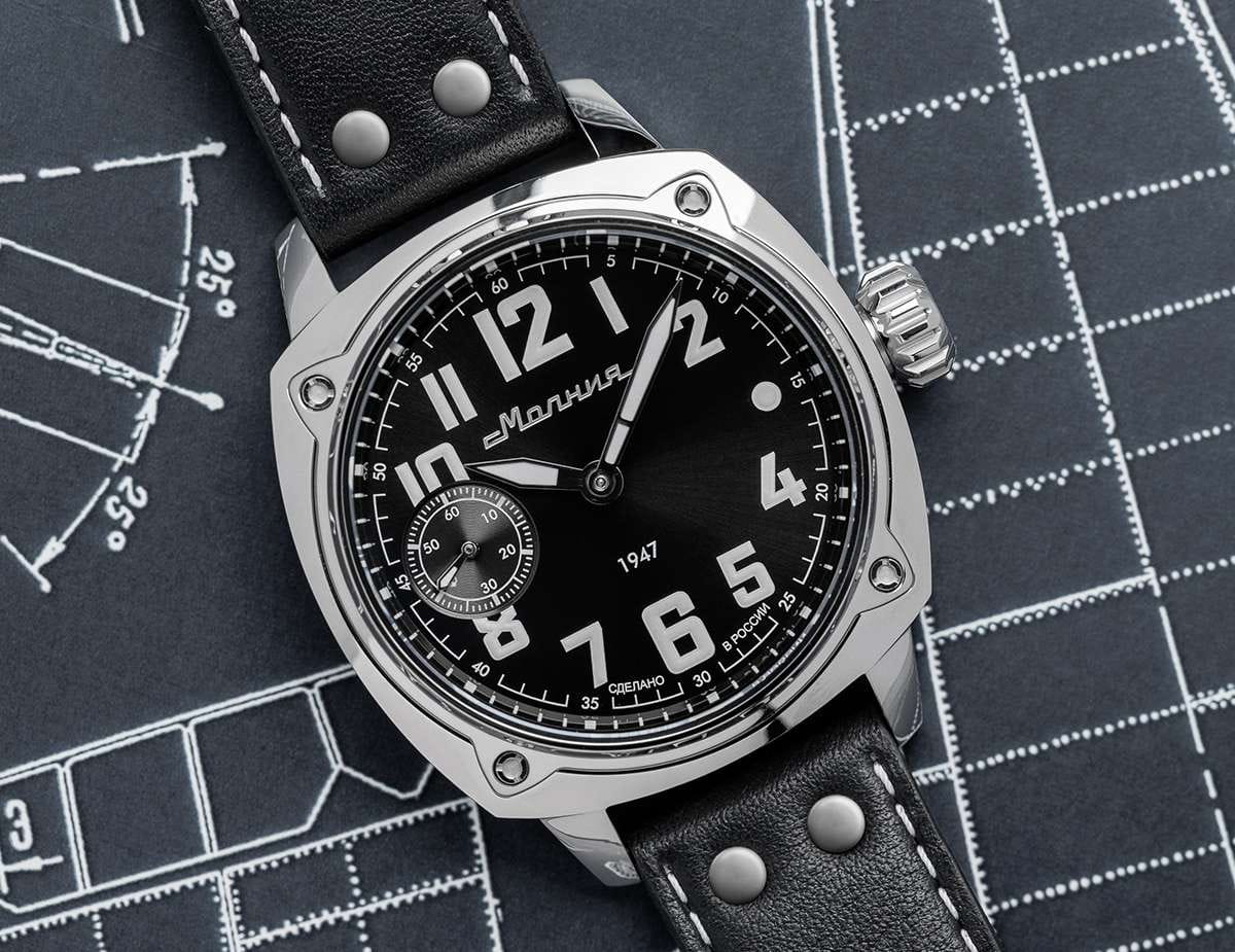 Мужские механические часы с ручным подзаводом — это аксессуар от легендарного бренда «МОЛНИЯ», созданный на Челябинском часовом заводе. Корпус диаметром 42 мм выполнен из нержавеющей стали 316L с зеркальной полировкой. БезельБезельВнешний ободок, закрепляющий стекло. В спортивных часах так называется поворотное кольцо с делениями на циферблате, выполняет роль таймера – замеряет отрезки времени на шкале. Неподвижный безель – элемент декора. Однонаправленно вращающийся безель на дайверских часах позволяет фиксировать моменты погружения и выныривания на поверхность. также выполнен из стали с зеркальной отделкой. Циферблат чёрного цвета оформлен индексами и стрелками. Малая секундная стрелка вынесена на позицию 9 часов. Стрелки и метки с люминесцентным покрытиемЛюминесцентное покрытиеПозволяет считывать показания времени в темноте. Производители наносят на стрелки, часовые индексы, безель или поверхность циферблата светонакопительный состав, дающий холодное свечение. Super-LumiNova, обеспечивающим хорошую читаемость в темноте. Циферблат защищён сапфировым стекломСапфировое стеклоПрочный и надёжный материал из кристалла сапфира синтетического происхождения, характеризующийся особой твёрдостью и устойчивостью к царапинам и повреждениям. с антибликовым покрытиемАнтибликовое покрытиеСлой оксида металла в 0,13-0,3 микрон, благодаря которому стекло часов не бликует и не отражает свет. Антибликовое покрытие уменьшает отражение света в 10 раз, обеспечивая отличную читаемость показателей циферблата.. Механизм — мануфактурный калибр 3603, собранный вручную, с запасом хода до 40 часов. Прозрачная задняя крышка позволяет наблюдать за работой механизма. Часы оснащены кожаным ремешком чёрного цвета с белой отстрочкой и классической пряжкой. Водонепроницаемость 100 м позволяет использовать часы для плавания и повседневного ношения. Идеальный выбор для тех, кто ценит российское качество и традиции.