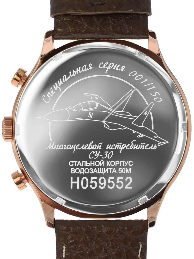 Ремешок выполнен из комбинации кожи и текстиля, обеспечивая комфорт при носке и добавляя модели уникальный внешний вид. Толщина корпуса составляет 13 мм, что придаёт часам солидный вид.