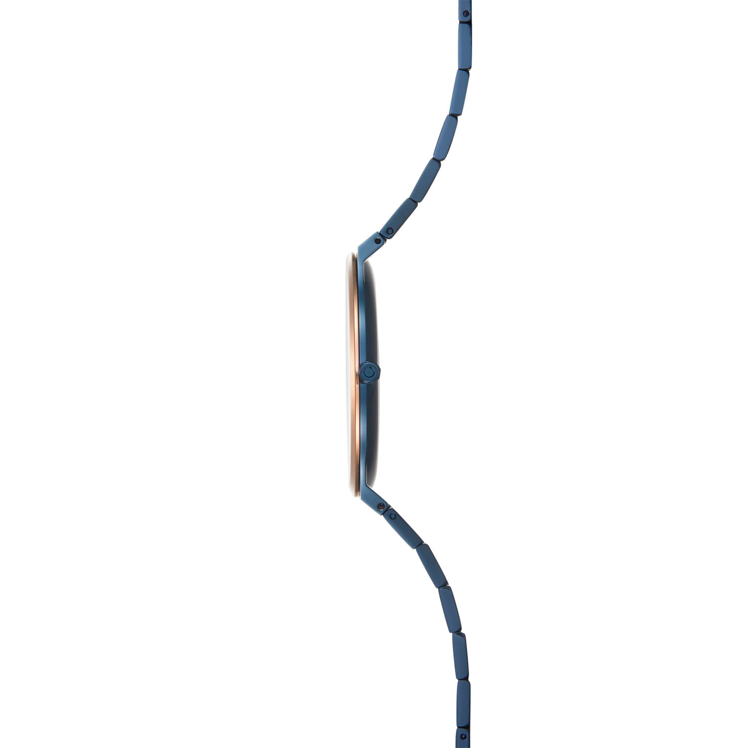 Модель оснащена кварцевым механизмом, обеспечивающим точное измерение времени. Браслет из нержавеющей стали с PVD-покрытиемPVDУльтратонкое покрытие наносится в технике вакуумного напыления, сочетает в себе нитрид титана особой прочности со слоем золота или оксида хрома. Несёт в себе декоративную или защитную функцию. синего цвета дополняет корпус и гарантирует комфортное ношение.