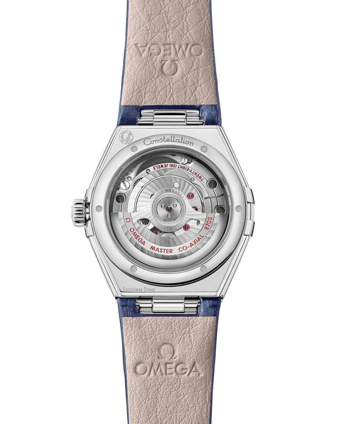 . Часы комплектуются интегрированным браслетом с удобной системой регулировки и приводятся в действие коаксиальным хронометром OMEGA Master Chronometer 8700, детали которого можно рассмотреть сквозь заднюю крышку из сапфирового стеклаСапфировое стеклоПрочный и надёжный материал из кристалла сапфира синтетического происхождения, характеризующийся особой твёрдостью и устойчивостью к царапинам и повреждениям..