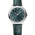 Коллекция OMEGA De Ville Prestige, сохраняющая свою актуальность с 1994 года, предстает в третьем поколении. Часы продолжают быть символом классического дизайна и утонченной элегантности. Модели, которые привлекают внимание разнообразием узоров, отделок и цветов, идеально подойдут для людей с различными стилями жизни и характерами. Часы в корпусе диаметром 27,5 мм из нержавеющей стали имеют циферблат с PVD-покрытиемPVDУльтратонкое покрытие наносится в технике вакуумного напыления, сочетает в себе нитрид титана особой прочности со слоем золота или оксида хрома. Несёт в себе декоративную или защитную функцию. оттенка зеленой сосны и радиальным сатинированием. На циферблате расположены стрелки с родиевым покрытием, а также чередующиеся римские цифры и метки из бриллиантов. Изделие с лаконичным дизайном дополнено задней крышкой, украшенной рельефным медальоном с изображением бога времени Хроноса. Часы представлены с переливающимся кожаным ремешком оттенка зеленой сосны. Модель оснащена кварцевым механизмом OMEGA 4061 со сроком службы элемента питания не менее 48 месяцев.
