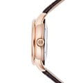 День недели и индикатор день/ночь вынесены на отдельные циферблаты, что делает использование часов удобным и информативным. Метки на циферблате представлены в виде штрихов и римских цифр, что придает часам элегантный и сдержанный облик.