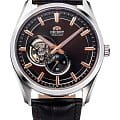 Часы Orient RA-AR0004Y из коллекции Contemporary — это стильное сочетание классического дизайна и современных технологий. Корпус диаметром 40,8 мм выполнен из нержавеющей стали и защищён Сапфировым стекломСапфировое стеклоПрочный и надёжный материал из кристалла сапфира синтетического происхождения, характеризующийся особой твёрдостью и устойчивостью к царапинам и повреждениям., которое обеспечивает долговечность и защиту от царапин. Коричневый циферблат с люминесцентными стрелками и меткамиЛюминесцентное покрытиеПозволяет считывать показания времени в темноте. Производители наносят на стрелки, часовые индексы, безель или поверхность циферблата светонакопительный состав, дающий холодное свечение. обеспечивает превосходную читаемость в любых условиях. Полу-скелетонный дизайн с окошком на отметке «9 часов» добавляет элегантности, позволяя наблюдать за работой механизма. Автоматический механизм Orient Calibre F6T22 с функцией ручного завода и остановки секундной стрелки обеспечивает высокую точность и удобство. Запас хода до 40 часов делает часы надёжным спутником для повседневного использования. Коричневый кожаный ремешок со стандартной застежкой обеспечивает комфортное ношение и надёжную фиксацию. Водонепроницаемость до 50 метров защищает часы от случайных брызг. Orient RA-AR0004Y — это выбор для тех, кто ценит стиль, качество и современные технологии в одном аксессуаре.